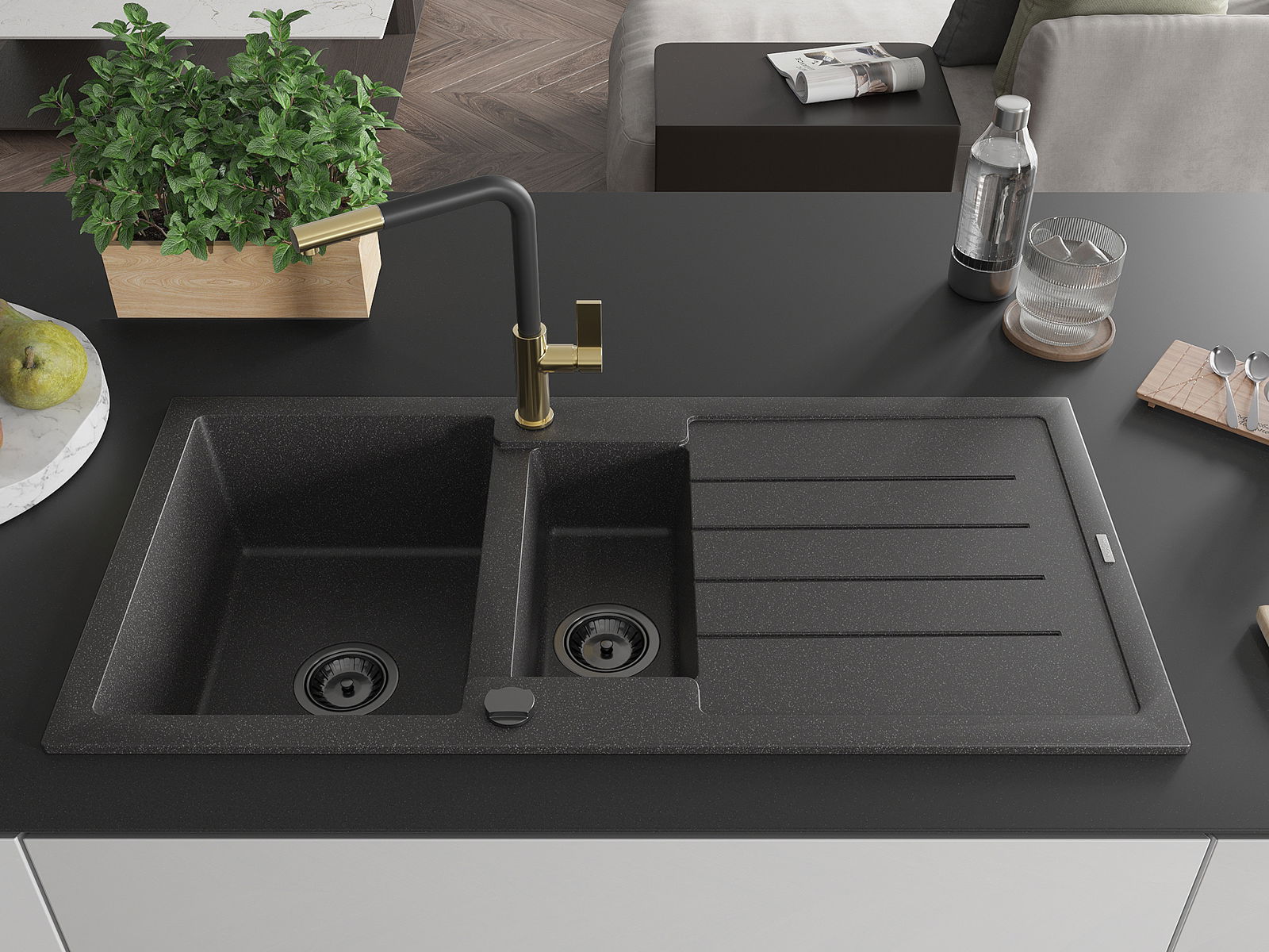 Chiuveta a fost realizată din granit de înaltă calitate. Reprezintă un complement elegant și, mai presus de toate, practic pentru orice bucătărie, indiferent de stilul acesteia. Calitatea înaltă și durabilitatea granitului asigură o utilizare de lungă durată.