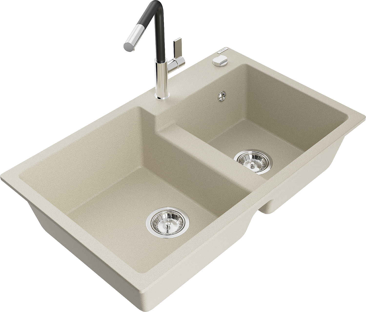 Mexen Tomas chiuvetă granit 2 compartimente cu baterie de bucătărie Flora, bej - 6516-69-670401-07