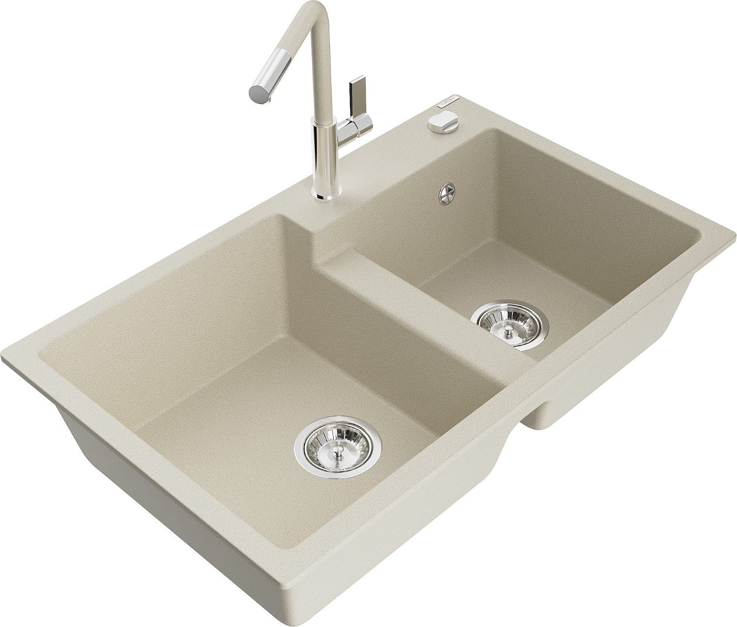 Mexen Tomas chiuvetă granit 2-comparte cu baterie bucătărie Flora, bej - 6516-69-670401-09