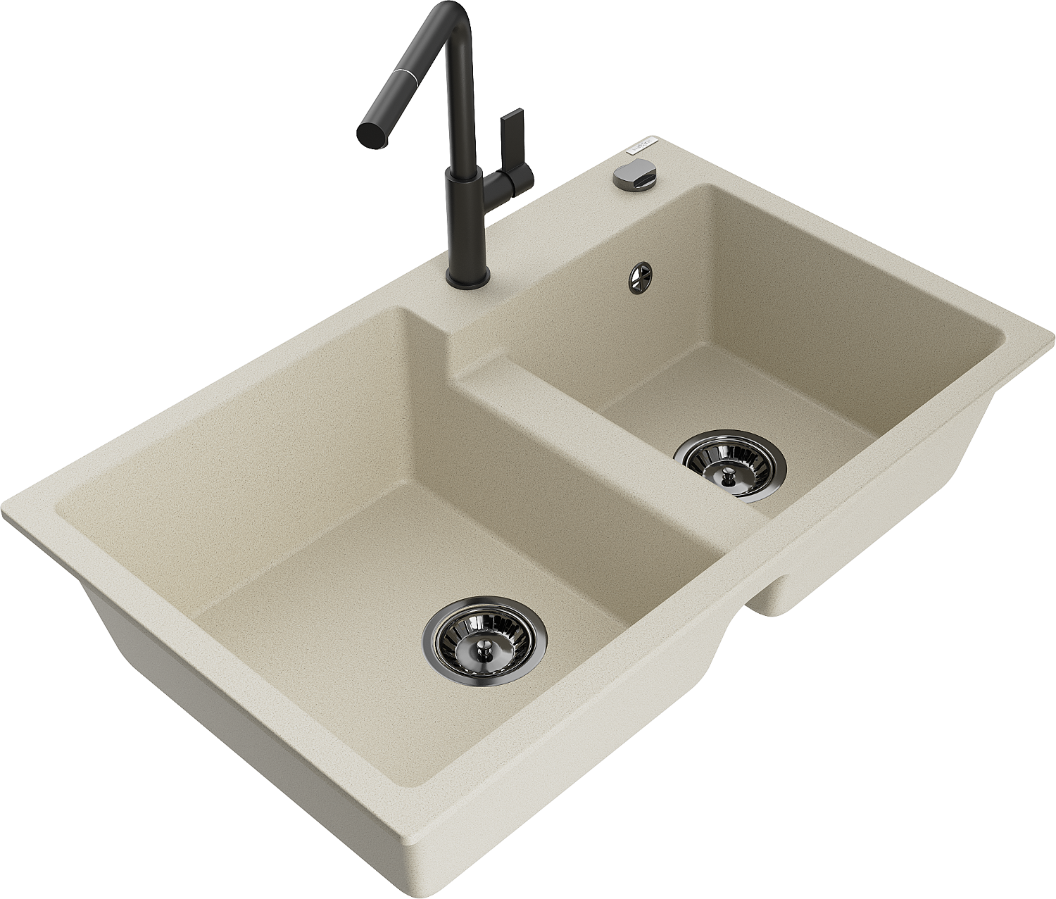 Mexen Tomas chiuvetă de granit cu 2 compartimente cu baterie bucătărie Flora, bej - 6516-69-670401-70-B