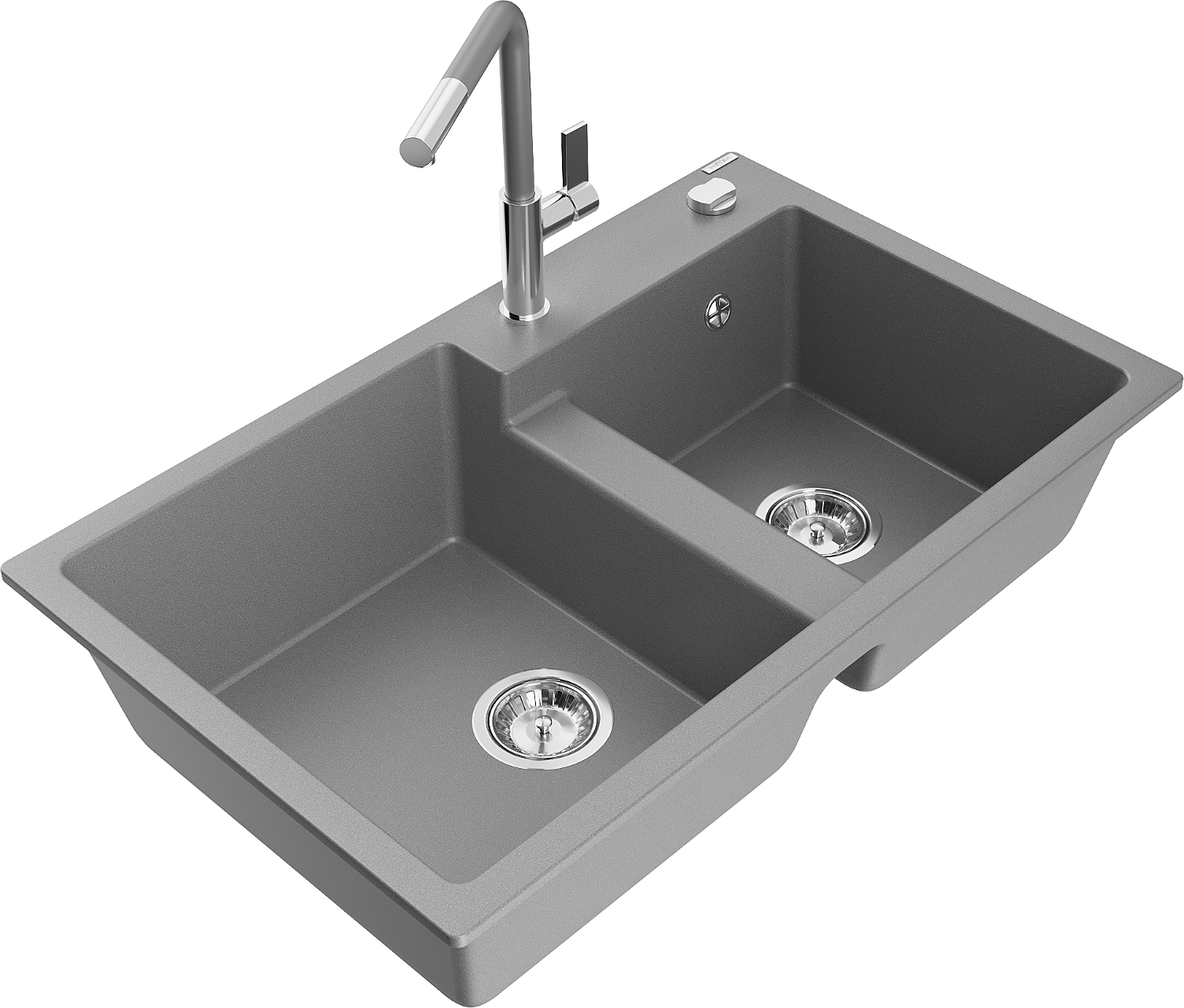 Mexen Tomas chiuvetă de granit cu 2 compartimente cu baterie de bucătărie Flora, gri - 6516-71-670401-06