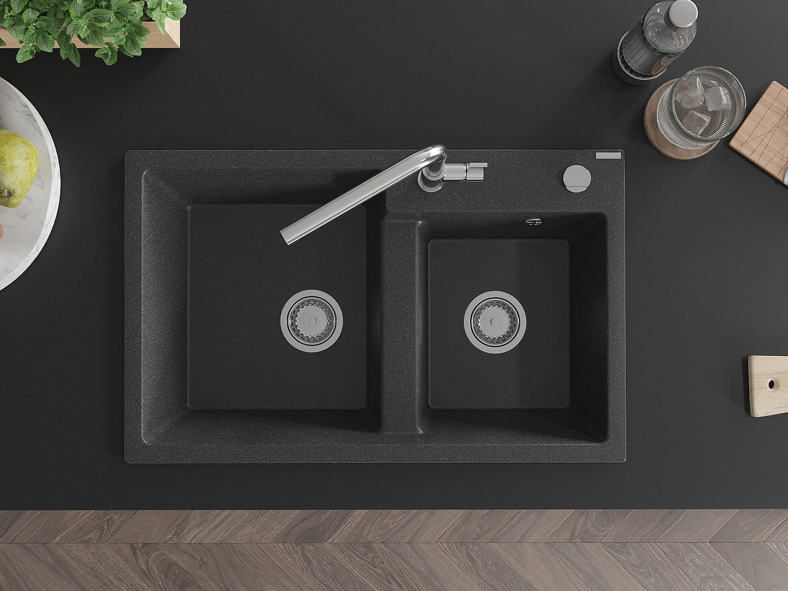 Chiuveta are o gaură prezentată cu un diametru de 35 mm pentru auto -burst. Poate fi folosit, printre altele Pentru montarea unui distribuitor de lichid care va elimina prezența sticlelor de plastic în bucătărie și îi va oferi un finisaj elegant.