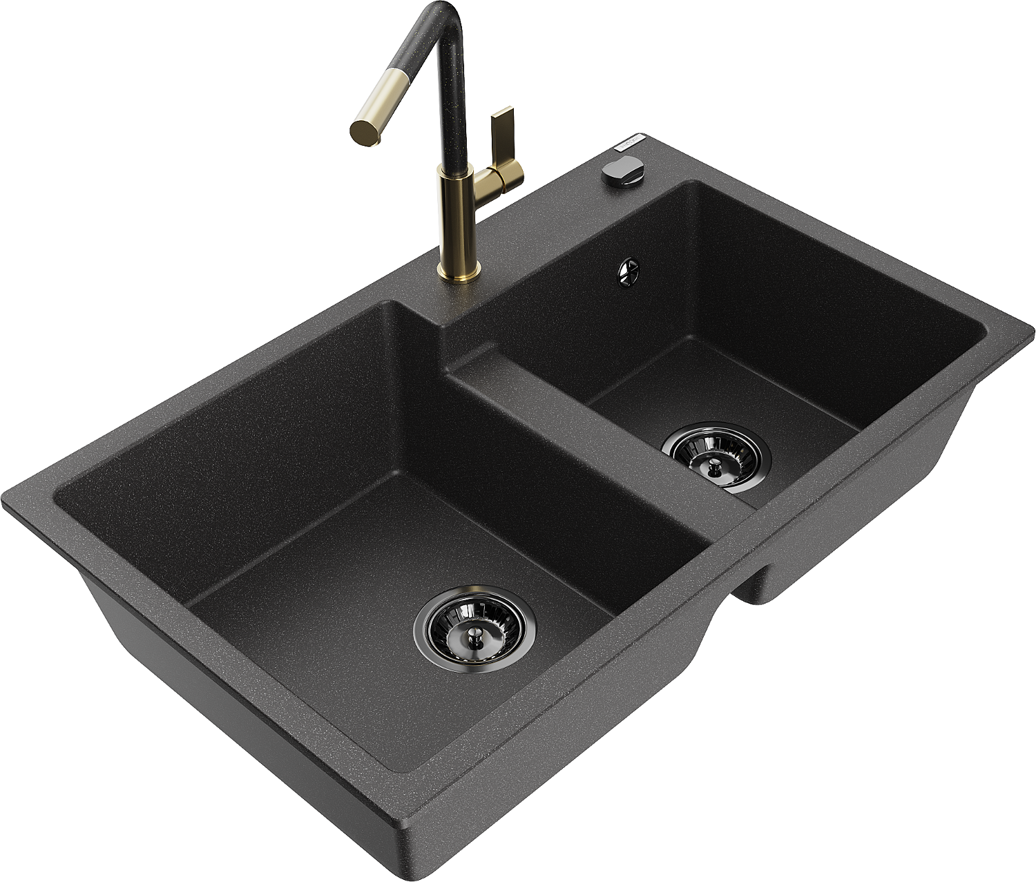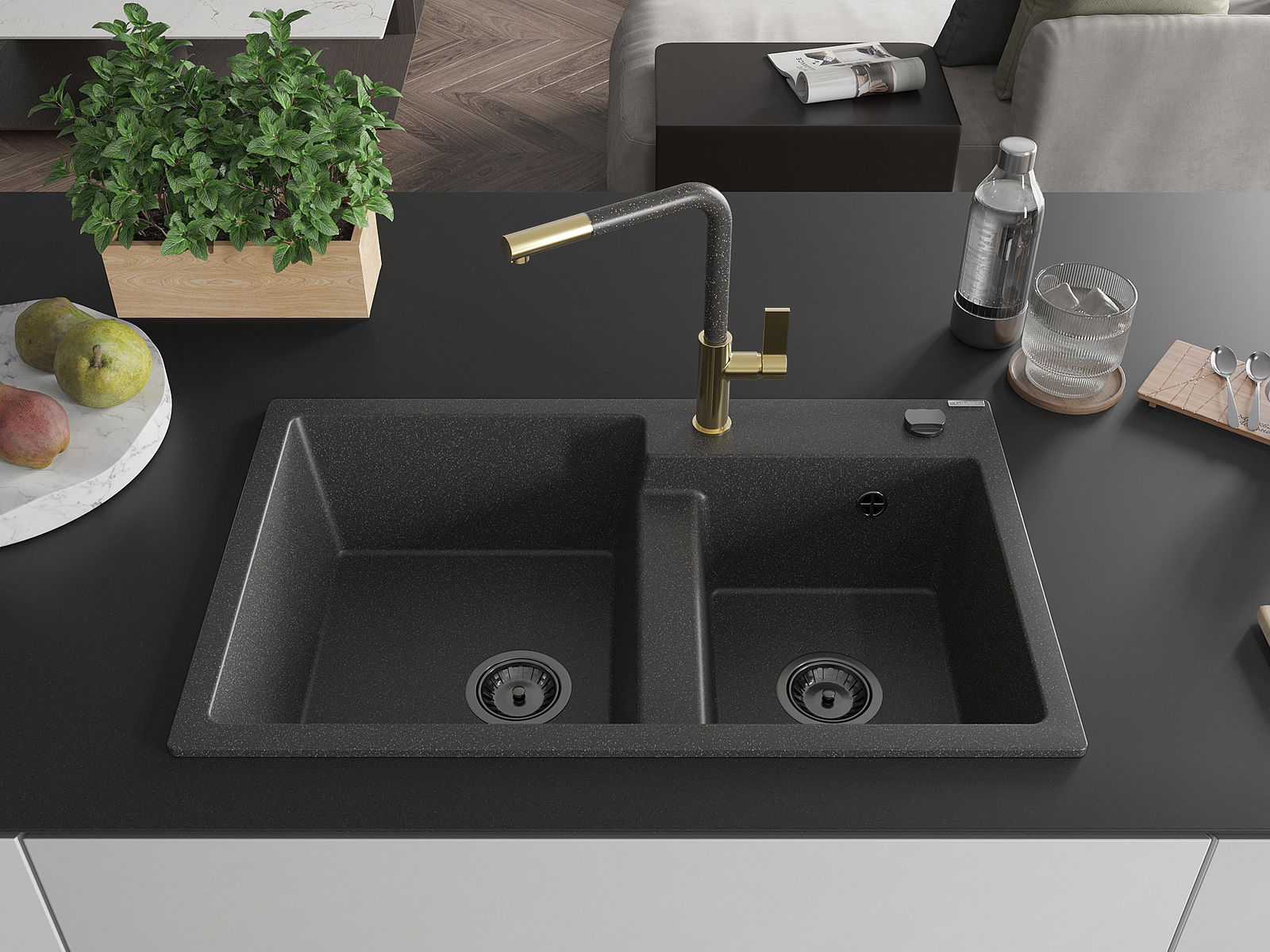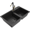 Mexen Tomas chiuvetă de bucătărie din granit cu 2 compartimente cu baterie Flora, negru stropit - 6516-76-670401-75-B