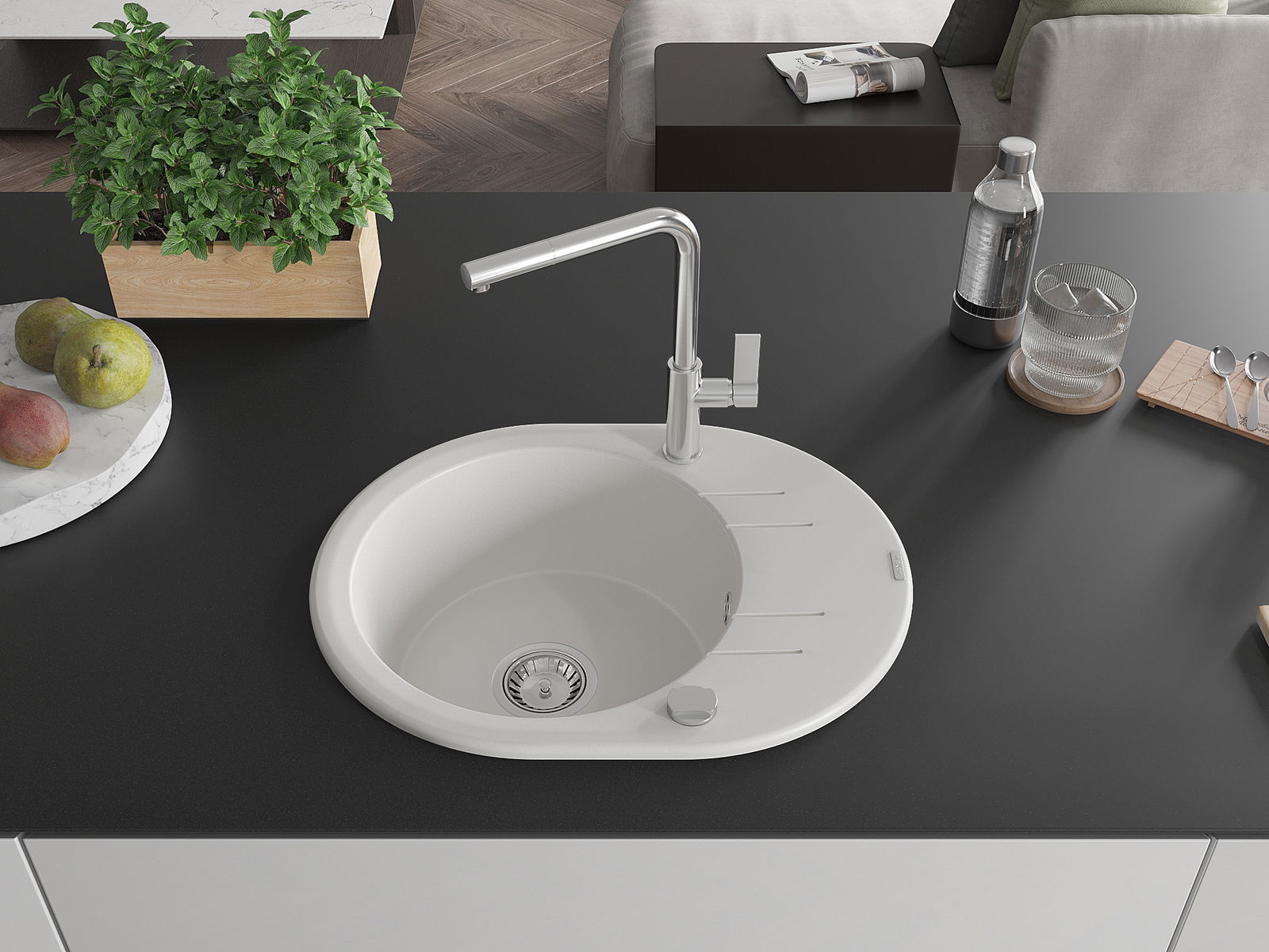Suprafața chiuvetei este rezistentă la pete și decolorarea, datorită căreia este ușor de curățat și își păstrează culoarea mult timp. Estetică și practic completarea fiecărei bucătării.