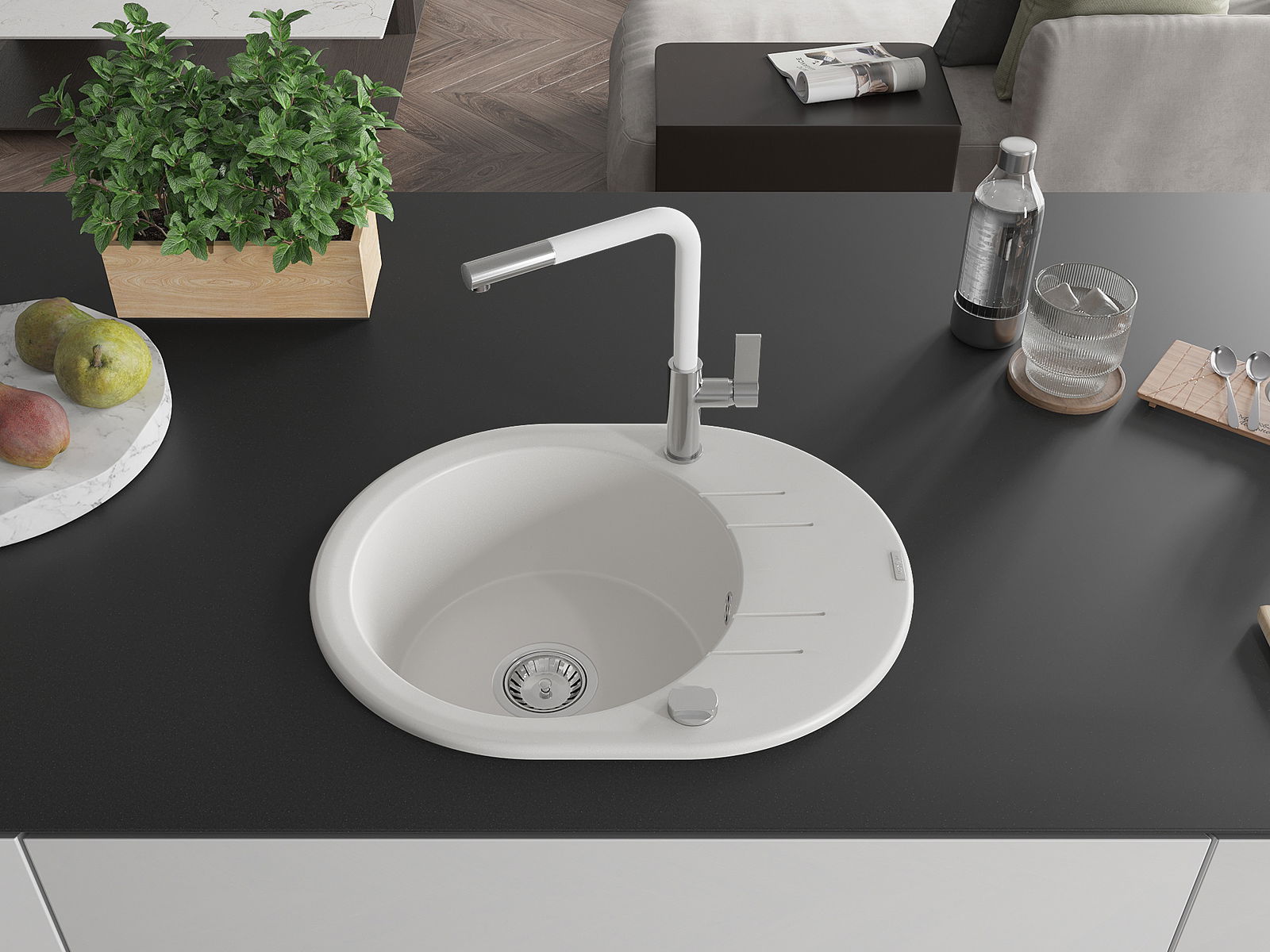 Suprafața chiuvetei este rezistentă la pete și decolorarea, datorită căreia este ușor de curățat și își păstrează culoarea mult timp. Estetică și practic completarea fiecărei bucătării.