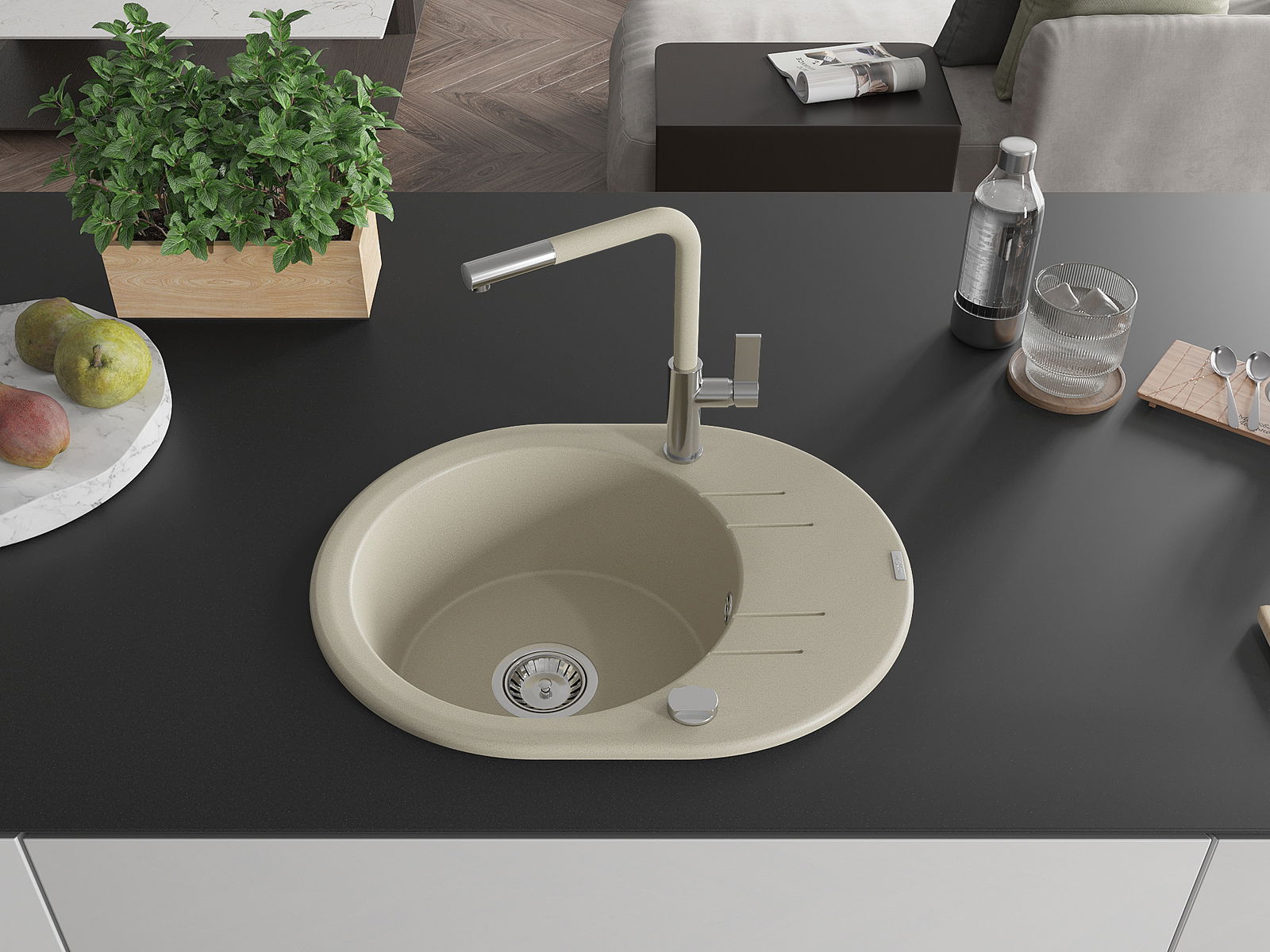 Suprafața chiuvetei este rezistentă la pete și decolorarea, datorită căreia este ușor de curățat și își păstrează culoarea mult timp. Estetică și practic completarea fiecărei bucătării.