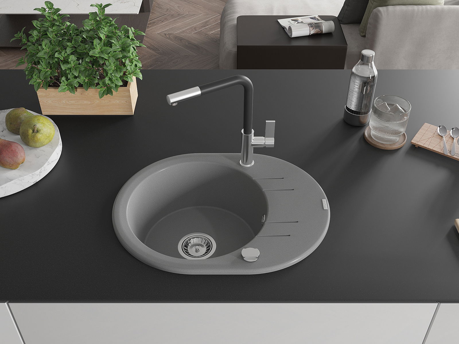Chiuveta este confecționată din granit de înaltă calitate. Este un complement elegant și, mai ales, practic pentru fiecare bucătărie, indiferent de stilul său. Durabilitatea de înaltă calitate și granit asigură mulți ani de utilizare.