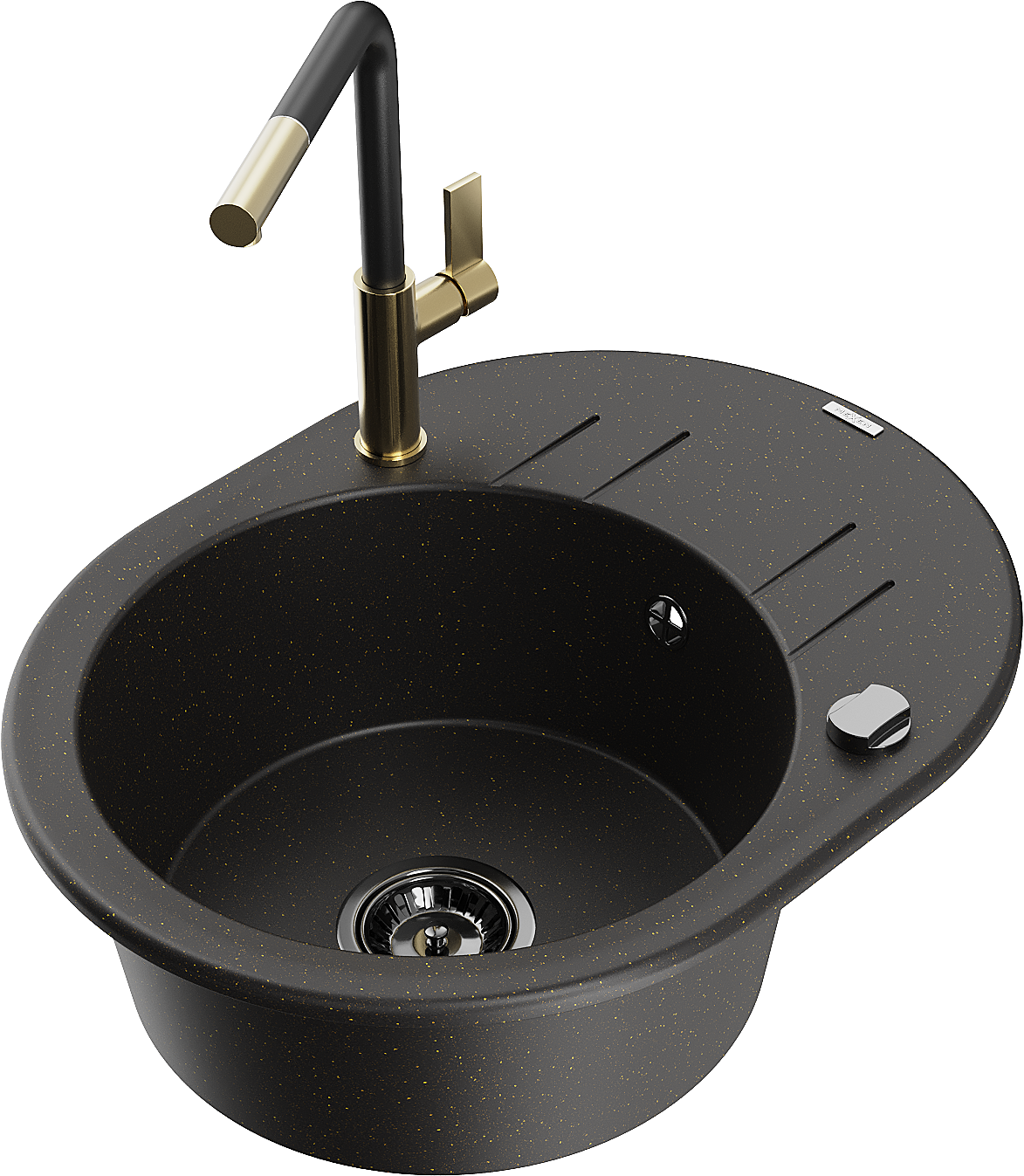 Mexen Kevin chiuvetă de granit cu 1 compartiment cu scurgător și baterie de bucătărie Flora, negru/auriu metalic - 6517-75-6704?