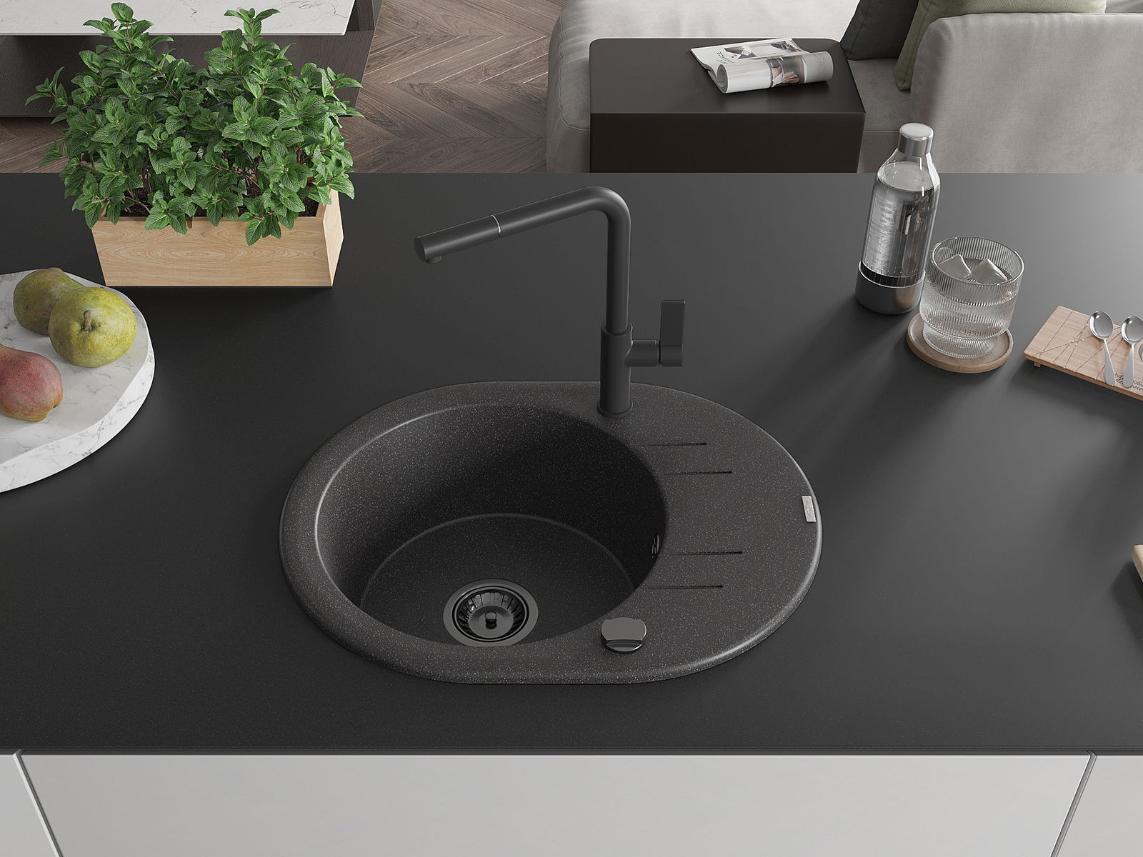 Suprafața chiuvetei este rezistentă la pete și decolorarea, datorită căreia este ușor de curățat și își păstrează culoarea mult timp. Estetică și practic completarea fiecărei bucătării.