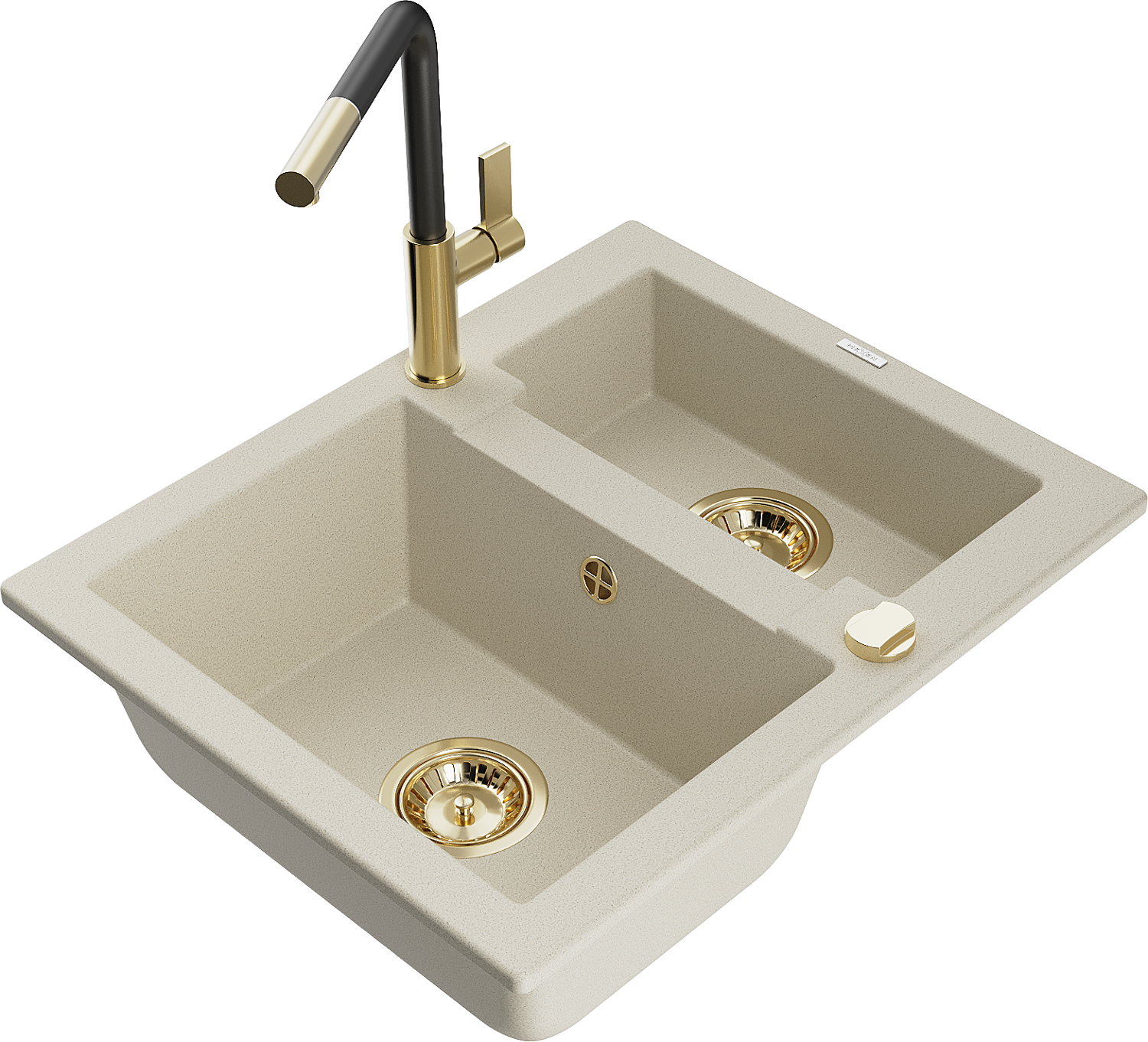 Mexen Carlos chiuvetă de bucătărie din granit cu 1,5 compartimente și baterie Flora, bej - 6518-69-670401-57-G
