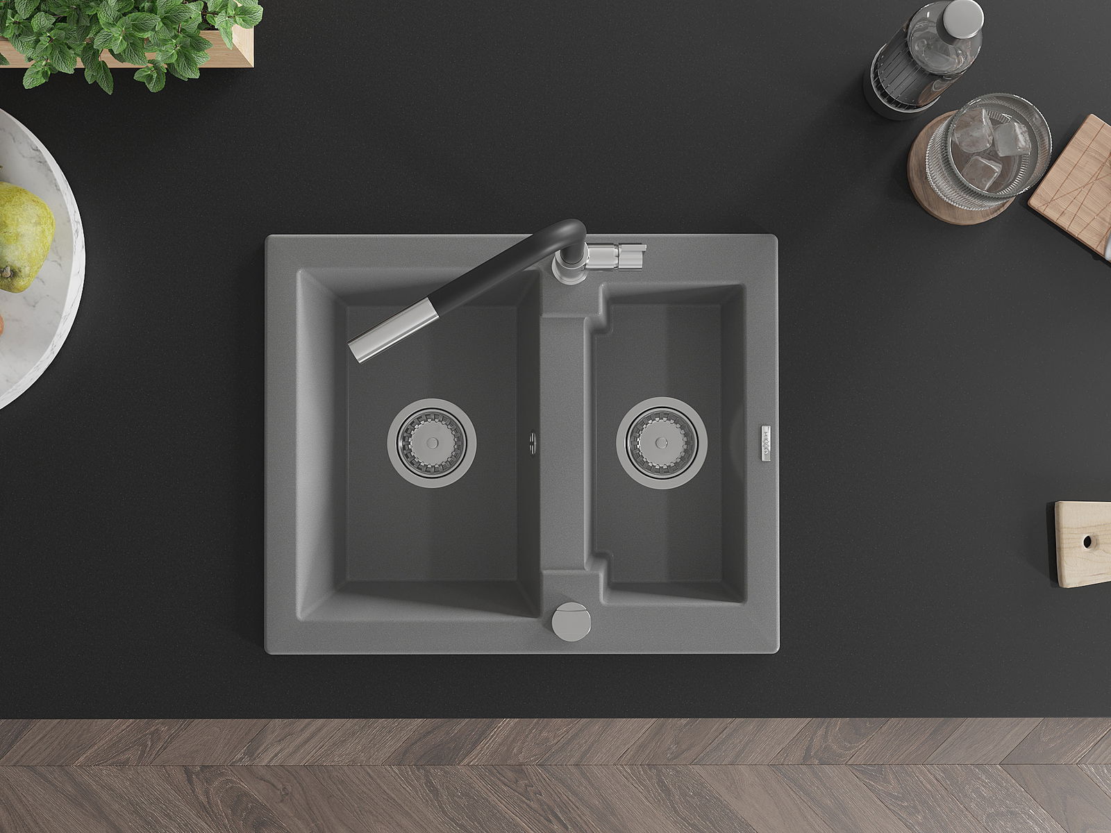 Mexen Carlos chiuvetă de granit cu 1,5 compartimente cu baterie de bucătărie Flora, gri - 6518-71-670401-07
