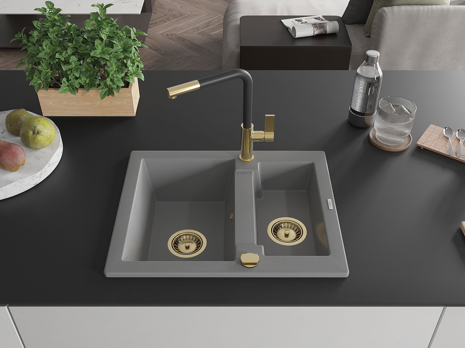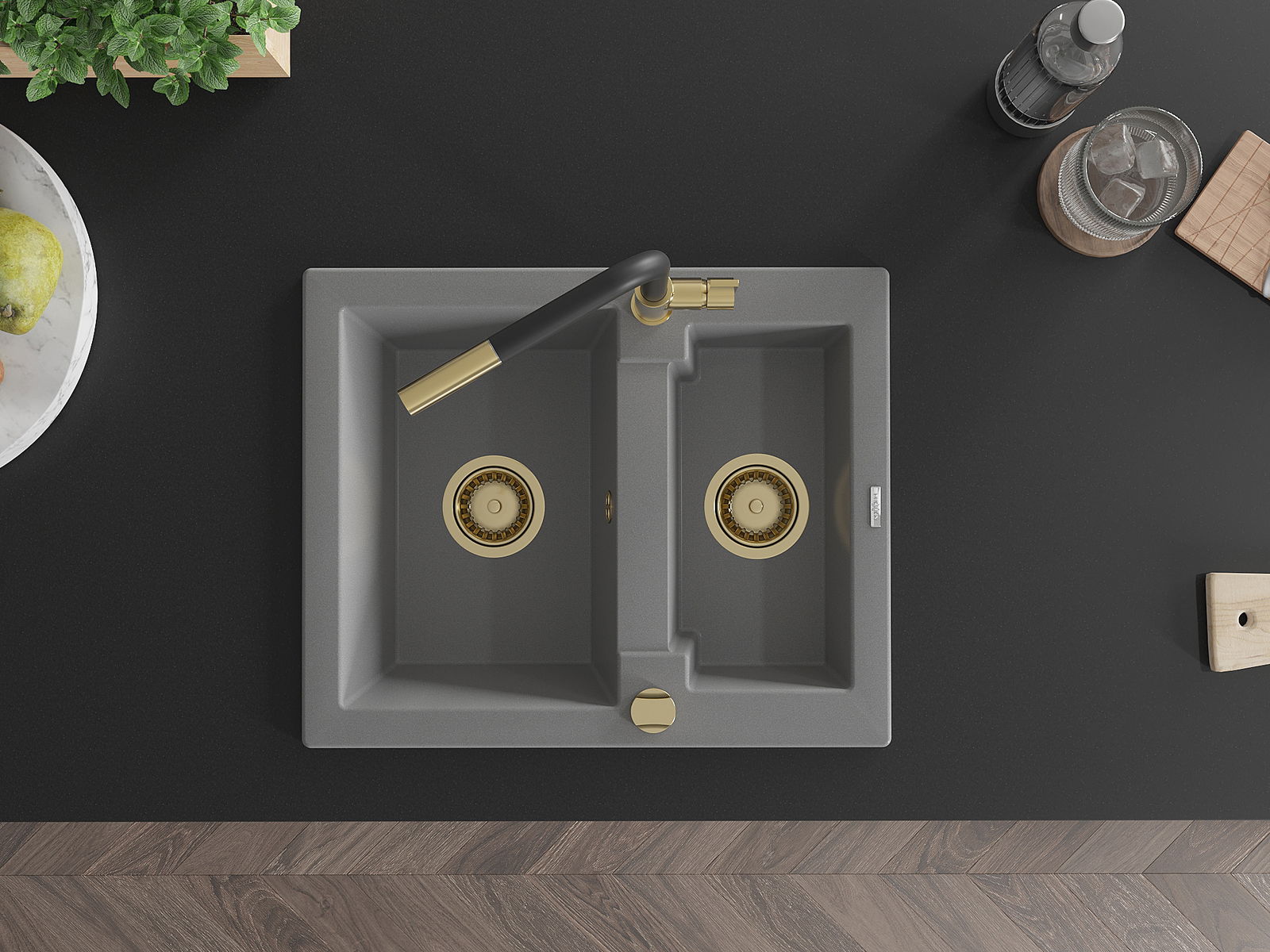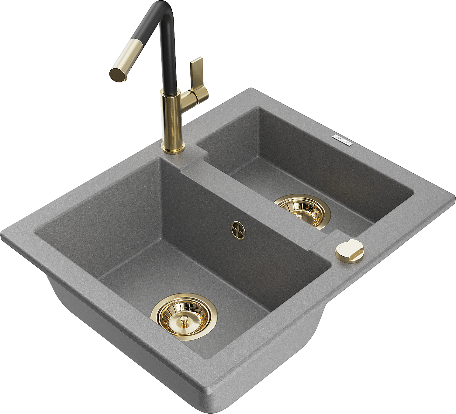 Mexen Carlos chiuvetă din granit 1,5 compartimente cu baterie de bucătărie Flora, gri - 6518-71-670401-57-G