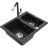Mexen Carlos chiuvetă din granit 1,5 compartimente cu baterie de bucătărie Flora, negru/argintiu metalizat - 6518-73-670401-07