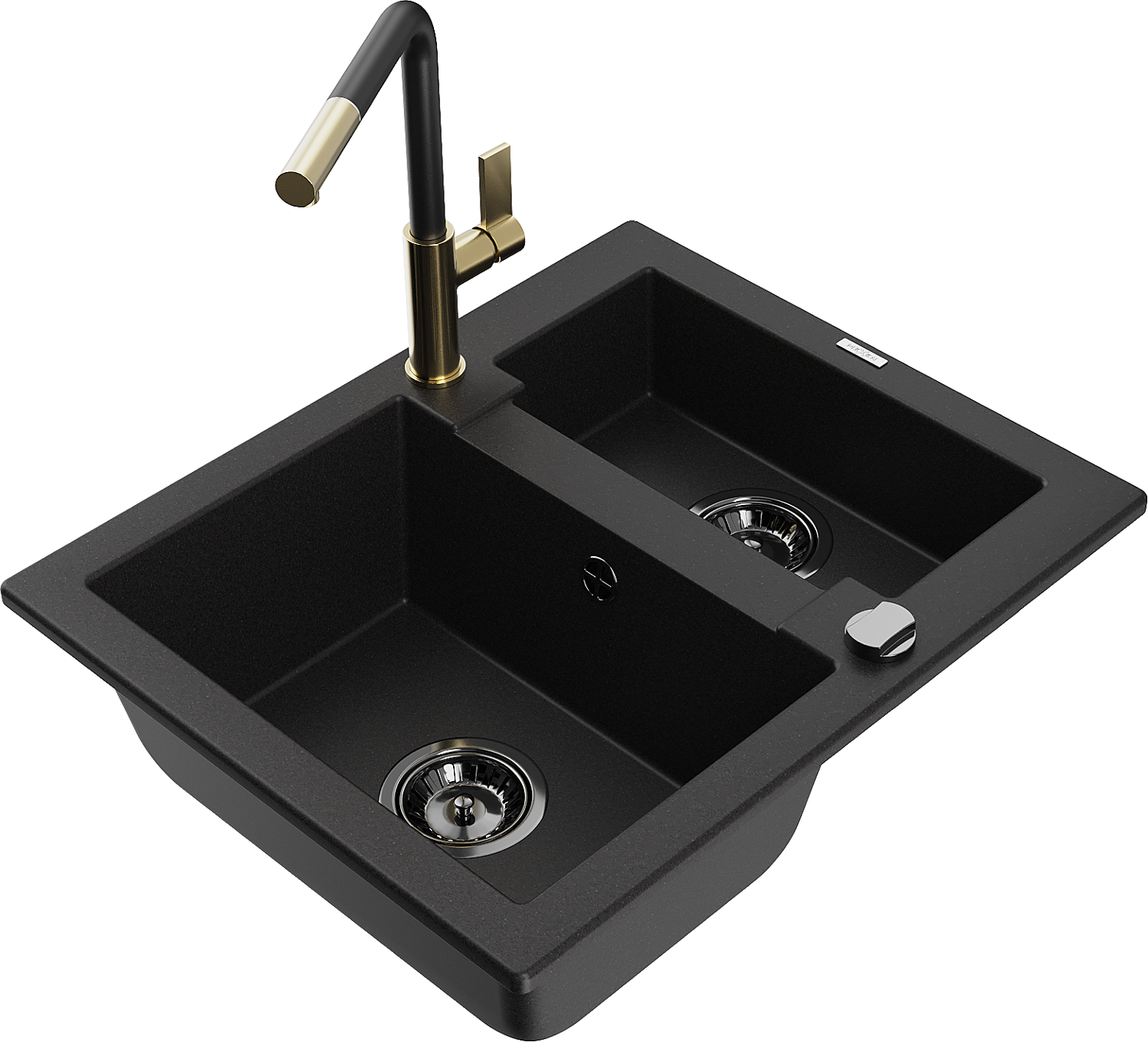 Mexen Carlos chiuvetă de granit cu 1,5 compartimente și baterie de bucătărie Flora, negru - 6518-77-670401-57-B