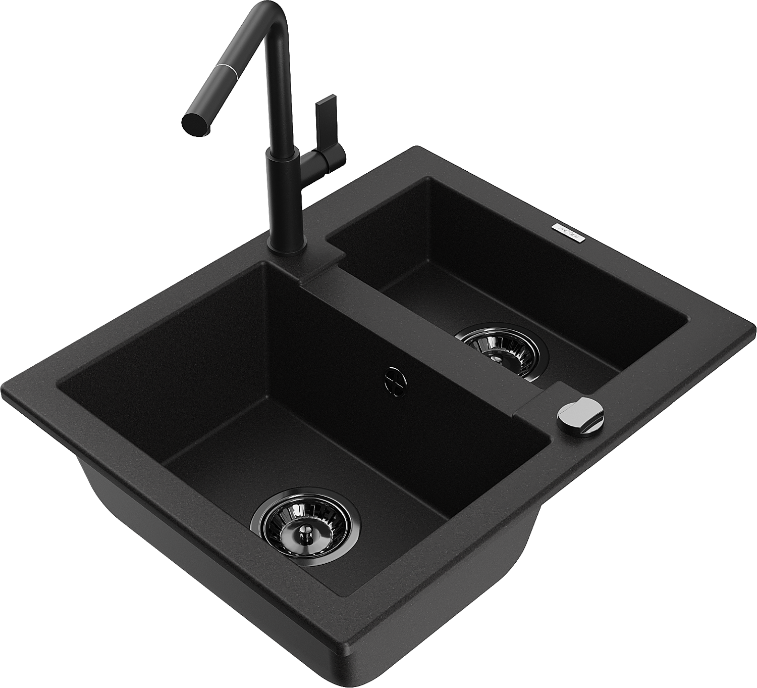 Mexen Carlos chiuvetă de granit cu 1,5 compartimente cu baterie de bucătărie Flora, negru - 6518-77-670401-70-B