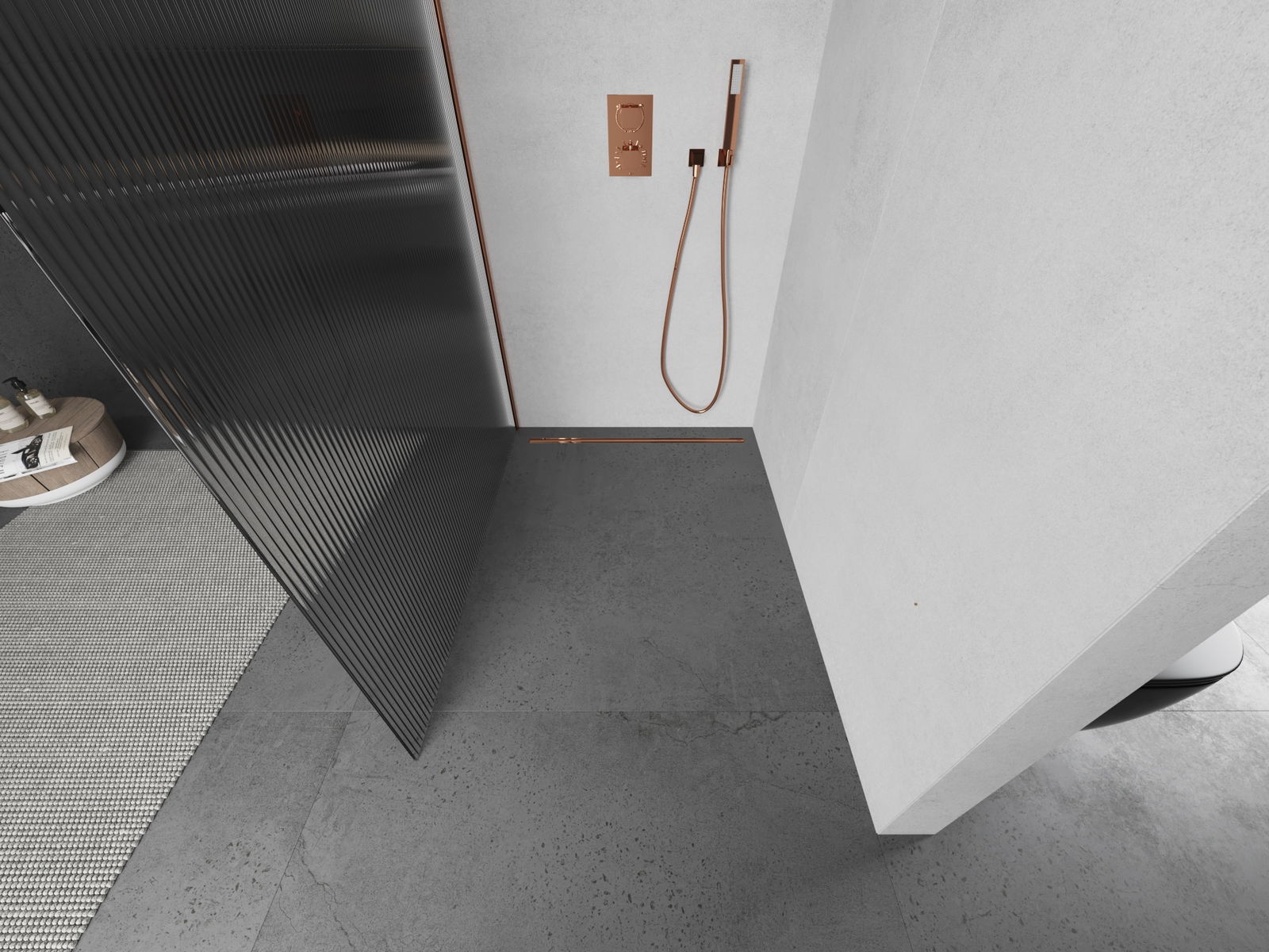 Mexen Kioto panou de duș Walk-in 100 x 200 cm, dungi 8 mm, aur roz - 800-100-101-60-09
