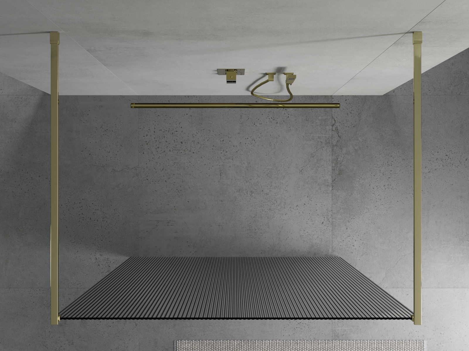 Mexen Kioto perete de duș de sine stătător 120 x 200 cm, dungi 8 mm, auriu - 800-120-002-50-09