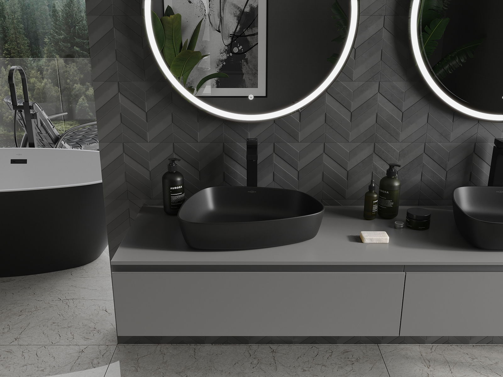Suprafața mată a ceramicii subliniază perfect caracterul culorii produsului, oferindu-i un finisaj unic și expresiv. Structura subtilă a ceramicii mate aduce eleganță în baie, creând un spațiu estetic.