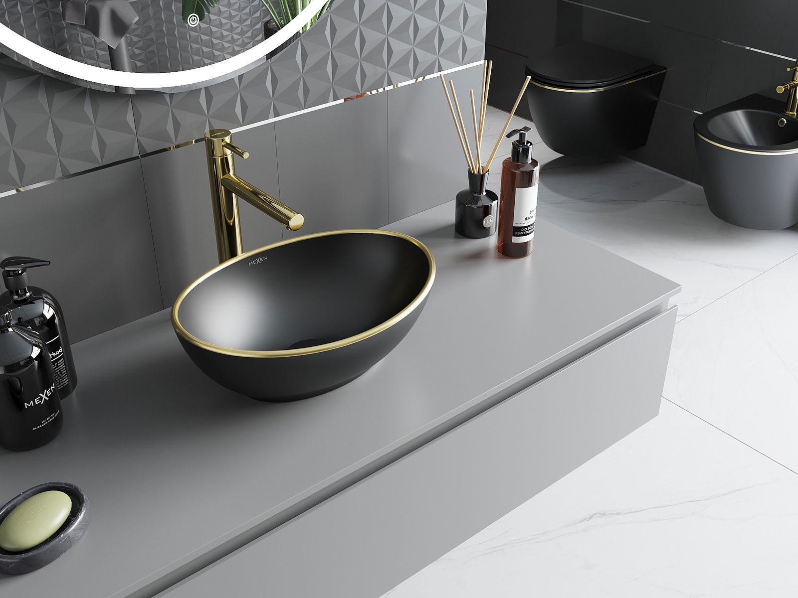 Suprafața mată a ceramicii subliniază perfect natura culorii produsului, oferindu -i un finisaj unic și expresiv. Structura subtilă a ceramicii mate introduce eleganță în baie, creând un spațiu estetic.