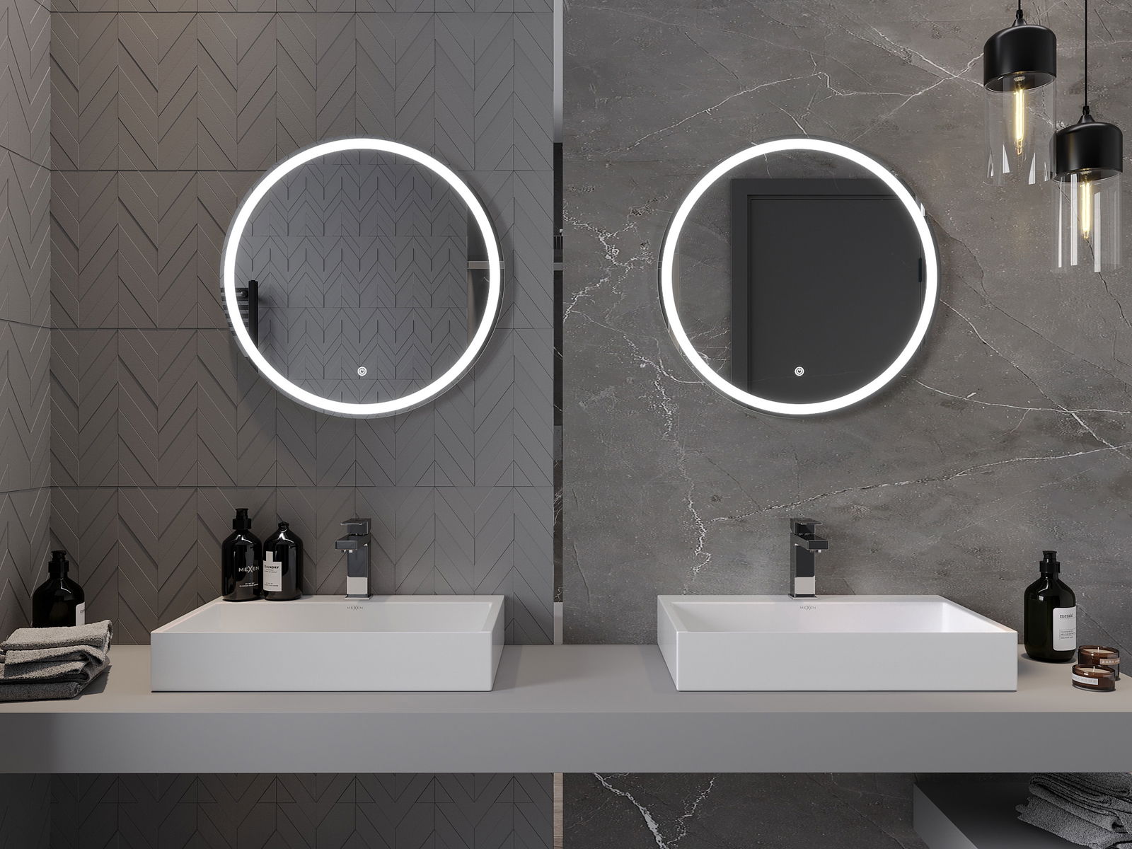 Iluminarea oglinzilor poate fi pornită într -un mod simplu și convenabil, atingând întrerupătorul de pe suprafața oglinzii. Acest lucru permite iluminarea rapidă, fără a fi nevoie să ajungă la comutatorul de iluminare tradițional suplimentar.