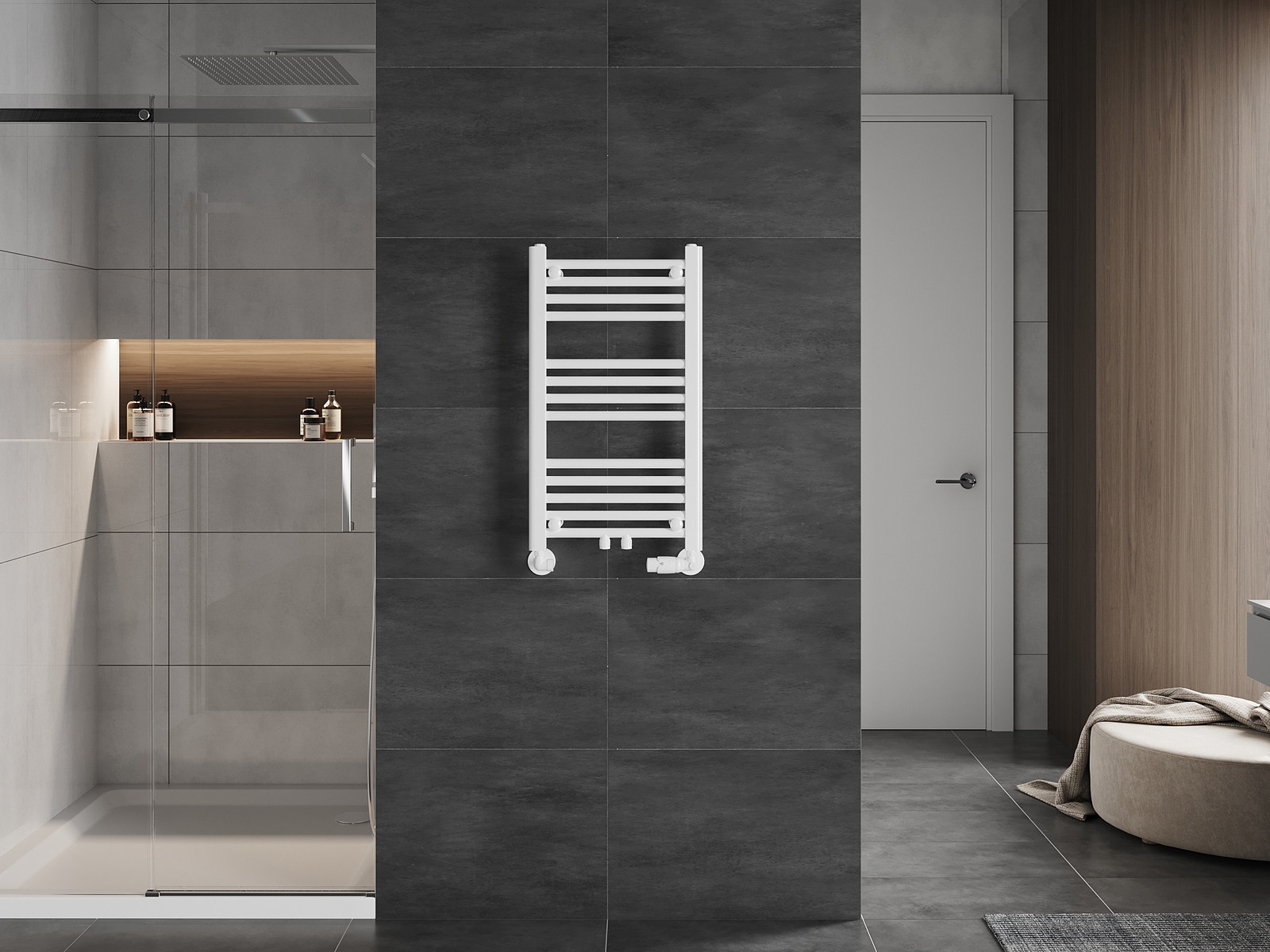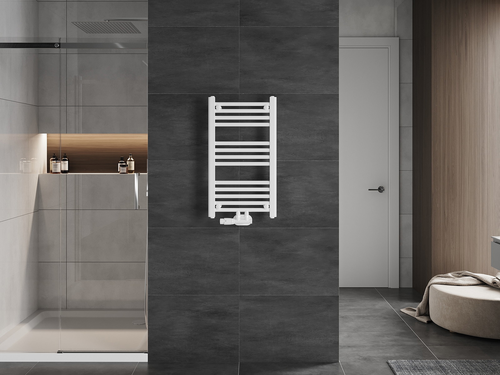 Mexen Mars este un radiator de baie elegant și funcțional, ideal pentru orice baie modernă. Oferă dimensiuni de 700x400 mm și o putere calorică de 238 W la temperatura de 75/65/20 °C, asigurând încălzirea optimă. Fabricat din oțel durabil, are un finisaj alb, rezistent la coroziune (RAL 9016). Reacția la foc clasa A1 și temperatura maximă de lucru de până la 95 °C garantează siguranța. Posibilitatea de montare a unei rezistențe și diverse opțiuni de conectare îl fac o soluție flexibilă. Greutatea de 4,06 kg și presiunea de lucru totală de 0,6 Mpa confirmă soliditatea sa.