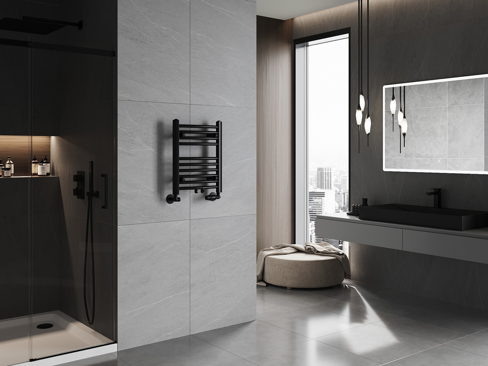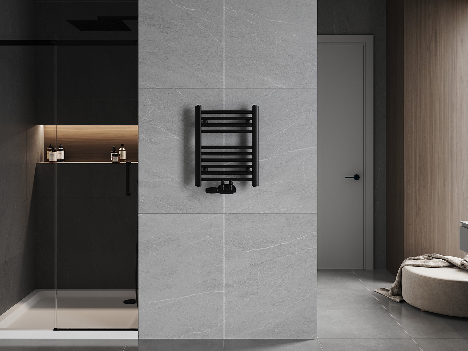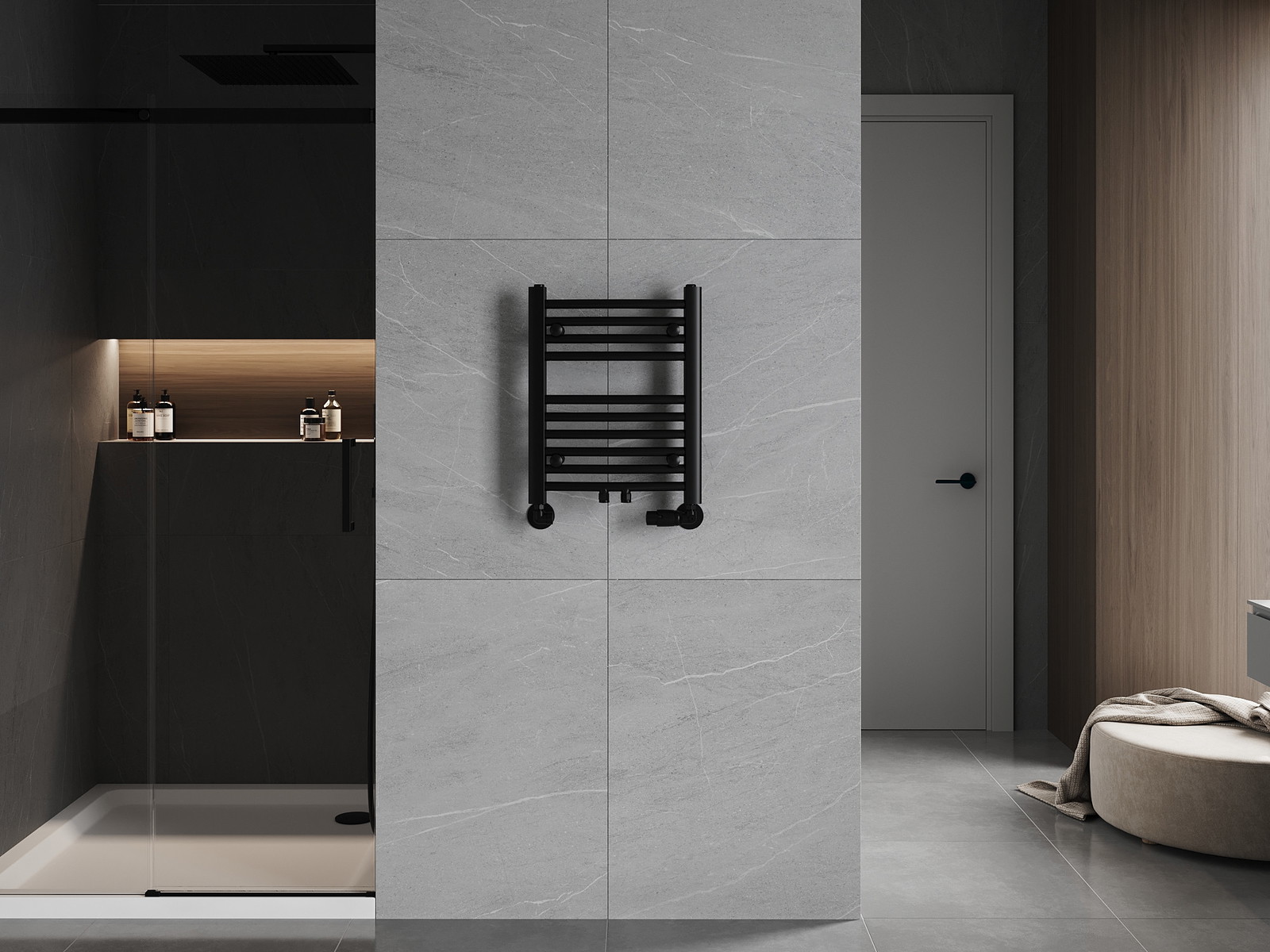 Mexen Ares este un radiator de baie elegant, care combină designul modern cu eficiența. Dimensiunile sale compacte (500 x 400 mm) îl fac ideal pentru spații mici, iar puterea de 179 W asigură o încălzire eficientă. Culoarea neagră (RAL 9005) și construcția din oțel îi conferă un aspect modern. Montajul este simplu datorită opțiunilor variate de conectare. Rezistența la coroziune garantează durabilitate, iar setul de montaj inclus ușurează instalarea. Temperatura maximă de lucru este de 95 °C, ceea ce îl face o alegere durabilă pentru orice baie.
