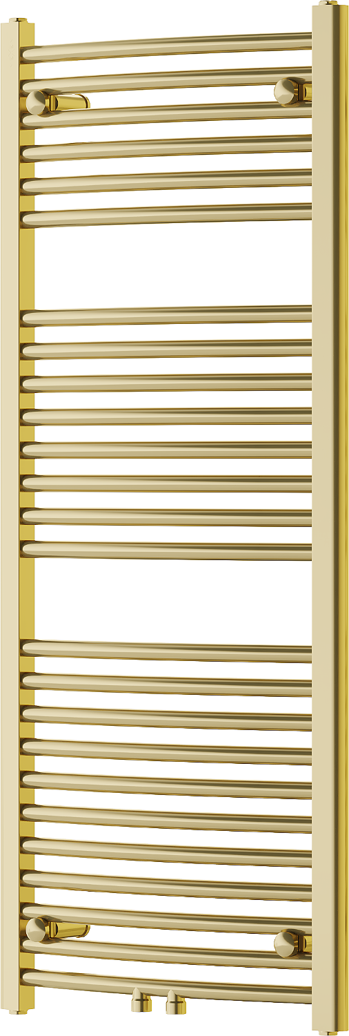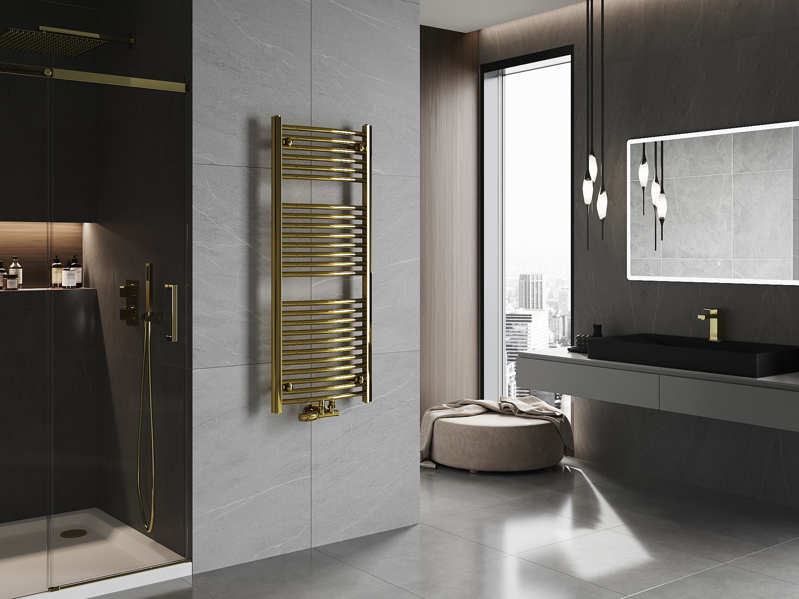 Radiatorul de baie Mexen Ares combină perfect funcționalitatea cu eleganța. Culoarea sa aurie și construcția solidă din oțel îl fac remarcat în orice baie. Datorită dimensiunilor de 1200 x 500 mm, oferă o eficiență optimă de încălzire de 420 W la o temperatură maximă de funcționare de 95°C. Deși are o greutate redusă de 8,37 kg, este rezistent la coroziune datorită stratului de vopsea de înaltă calitate. Posibilitatea de conectare a rezistenței electrice și setările flexibile ale conectorilor oferă un plus de confort în utilizare.
