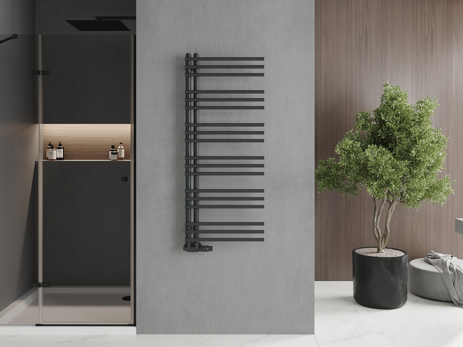 Mexen Neptun este un radiator de baie decorativ cu dimensiuni de 1200 x 500 mm și o putere de 456 W. Culoarea sa antracit (RAL 7016) și construcția din oțel adaugă eleganță oricărui interior. Radiatorul se remarcă prin calitatea înaltă a execuției, stratul de vopsea durabil rezistent la coroziune și posibilitatea de montare a unei rezistențe. Datorită dimensiunilor sale compacte, distanța dintre racorduri este de doar 5 cm, iar temperatura de lucru maximă este de 95 °C la o presiune de lucru de până la 0,6 Mpa. Setul include de asemenea console, set de montare, dopuri și aerisitor.