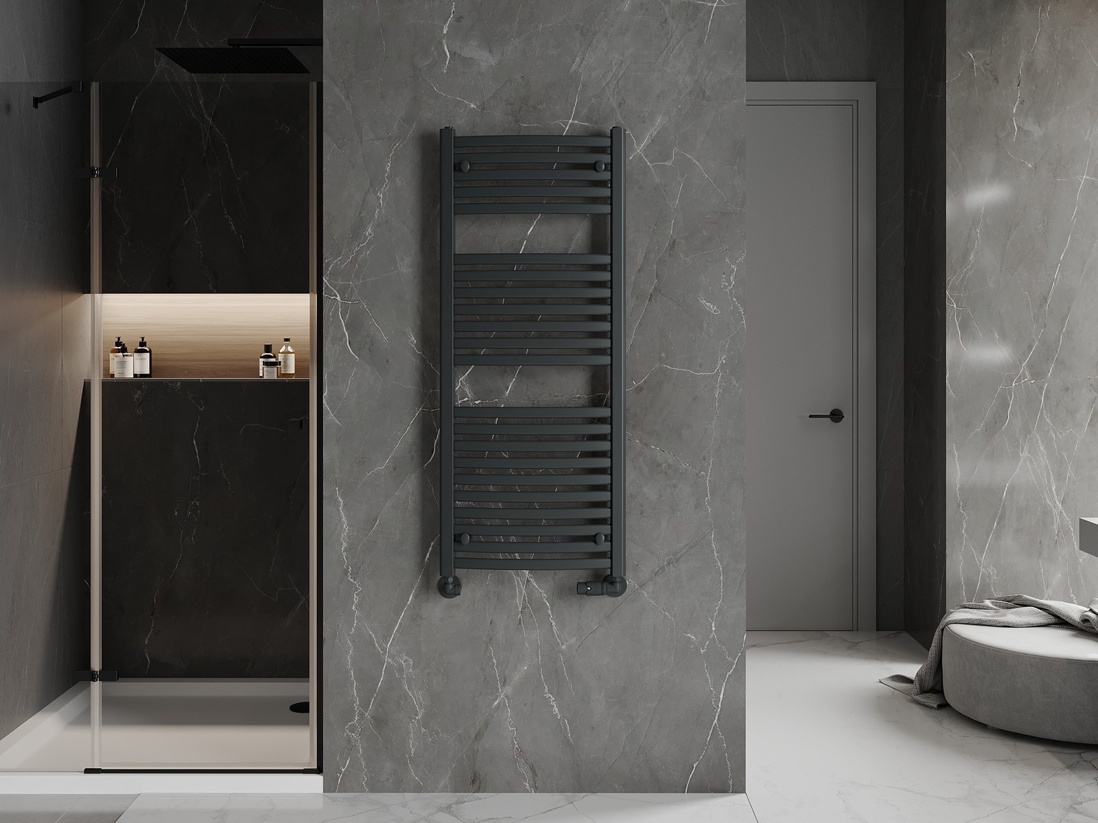 Mexen Helios este un radiator de baie modern cu dimensiuni de 1200 x 500 mm, caracterizat printr-o putere de 567 W și un finisaj elegant, antracit RAL 7016. Fabricat din oțel, asigură durabilitate și rezistență. Datorită reacției la foc de clasă A1 și temperaturii maxime de lucru de până la 95 °C, este sigur în utilizare. Radiatorul are un distanța între racorduri de 45 cm și posibilitatea de a monta o rezistență, precum și un finisaj rezistent la coroziune. Setul include suporturi, set de montaj, capace de închidere și ventil de aerisire.