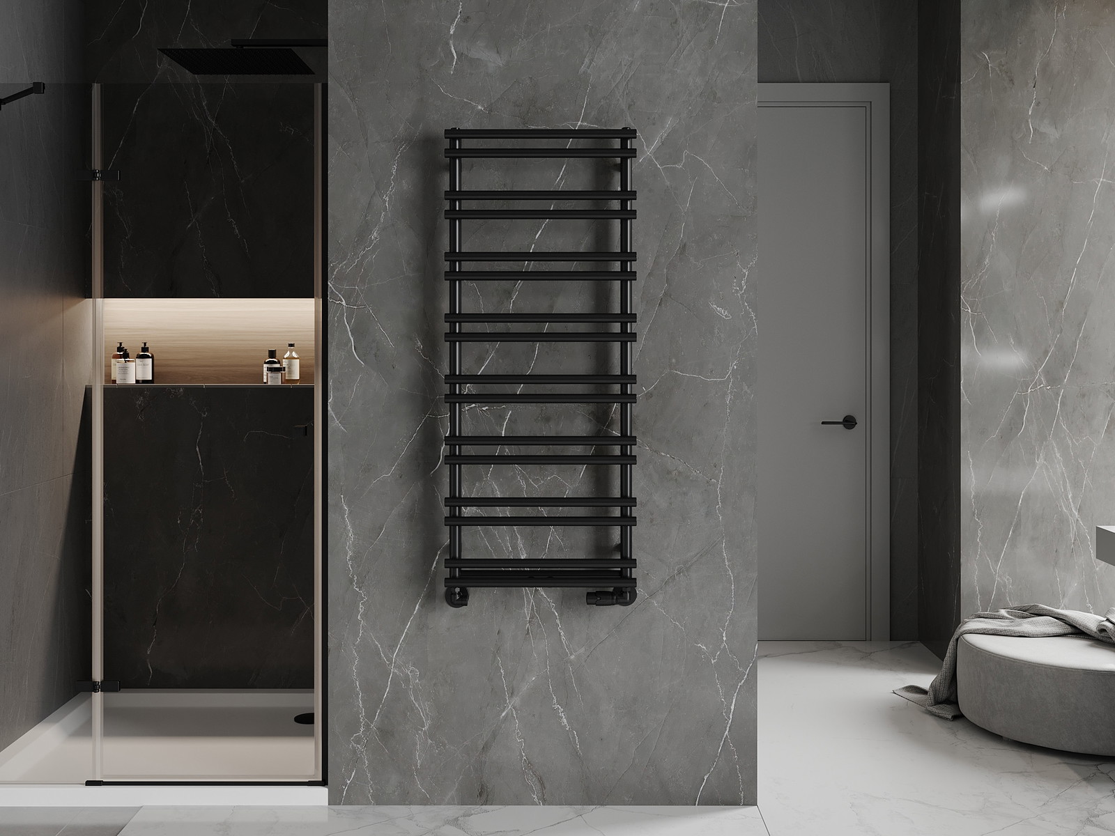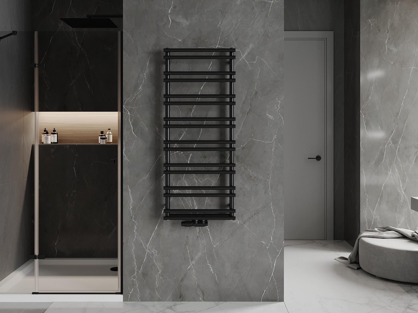 Radiatorul de baie Mexen Saturn, având dimensiunile de 1200 x 500 mm și o putere de 409 W, este combinația ideală de funcționalitate și stil. Culoarea sa neagră RAL 9005 adaugă eleganță oricărui interior. Fabricat din oțel de înaltă calitate, este rezistent la coroziune datorită stratului său durabil de vopsea. Posibilitatea de a monta o rezistență și cele două tipuri de conexiuni (jos 45 cm sau mijloc 5 cm) asigură flexibilitate în instalare. Datorită reacției la foc A1 și temperaturii maxime de funcționare de 95 °C, Mexen Saturn este nu doar estetic, ci și sigur în utilizare.