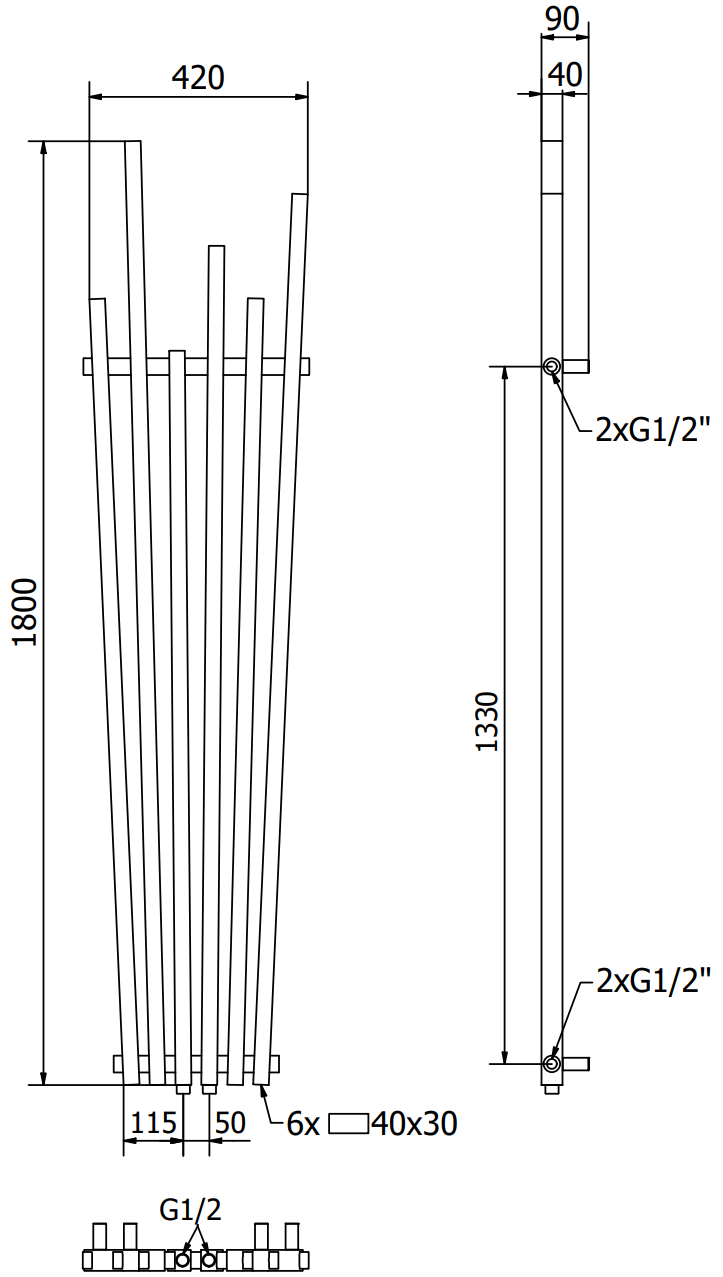- 2xG ½″ central