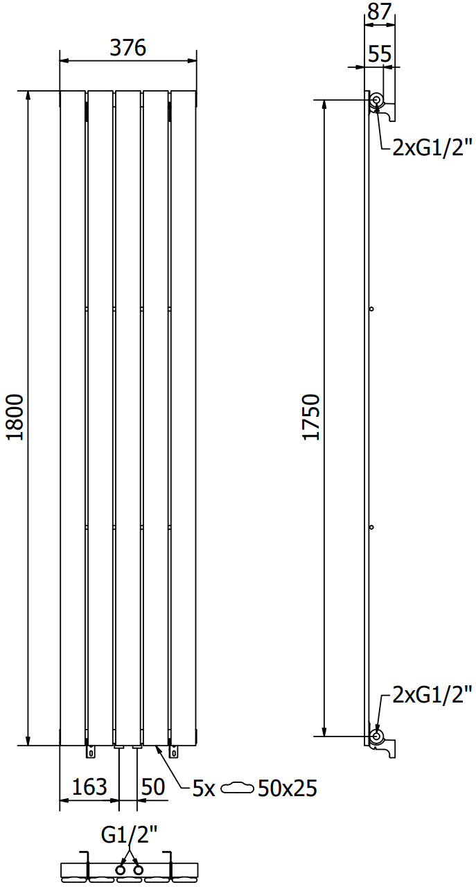 - 2xG ½″ central