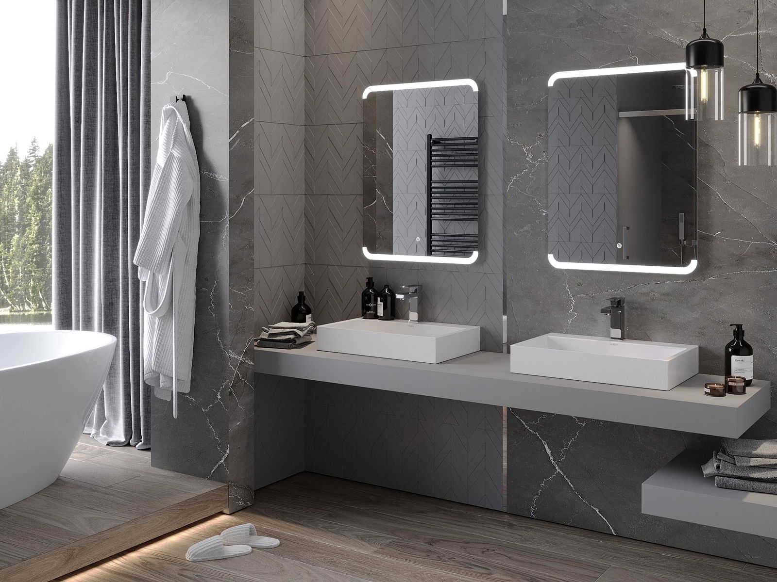 Iluminarea oglinzilor poate fi pornită într -un mod simplu și convenabil, atingând întrerupătorul de pe suprafața oglinzii. Acest lucru permite iluminarea rapidă, fără a fi nevoie să ajungă la comutatorul de iluminare tradițional suplimentar.