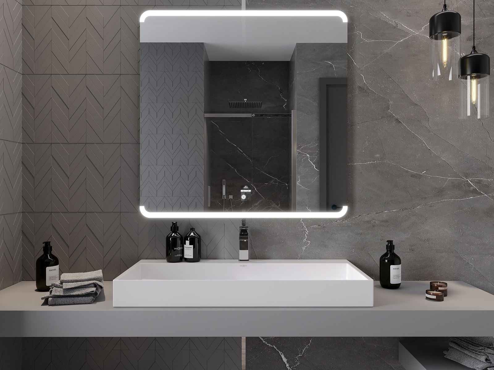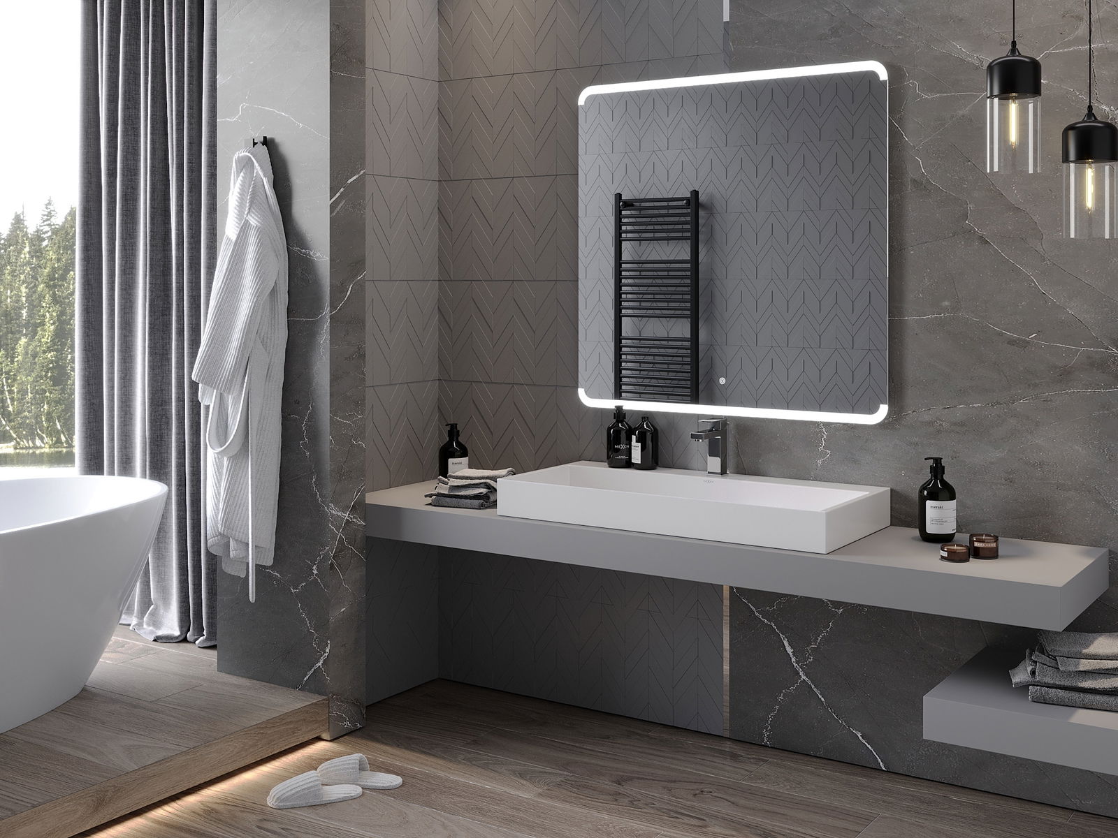 Lumina de fundal LED la oglindă este un element practic care facilitează îngrijirea zilnică, datorită posibilității unei iluminări faciale ideale. Lumina de fundal oferă băii un finisaj modern, subliniind decorul său elegant.