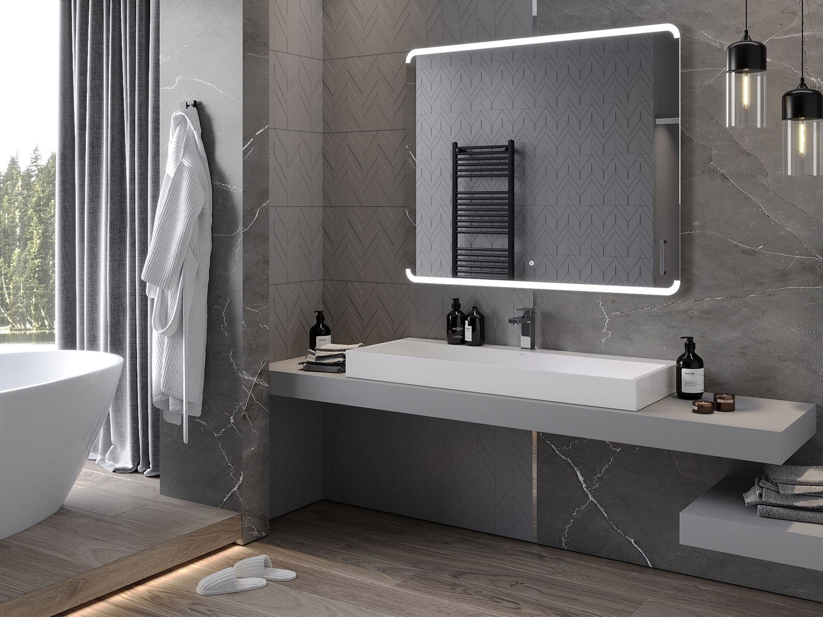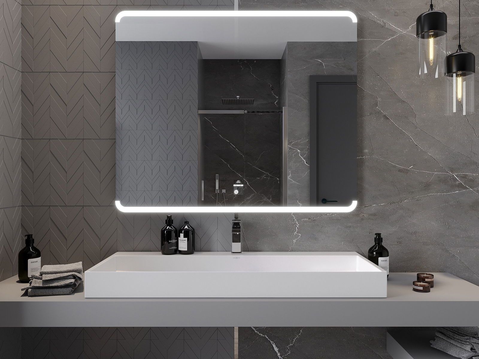 Lumina de fundal LED la oglindă este un element practic care facilitează îngrijirea zilnică, datorită posibilității unei iluminări faciale ideale. Lumina de fundal oferă băii un finisaj modern, subliniind decorul său elegant.