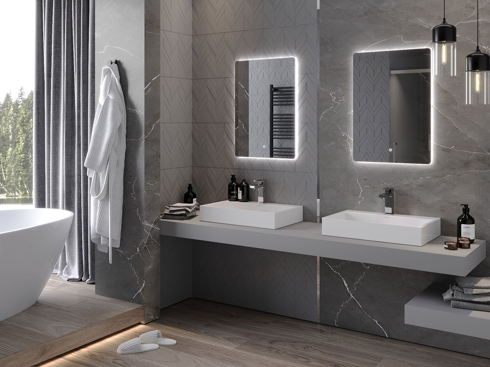 Lumina de fundal LED la oglindă este un element practic care facilitează îngrijirea zilnică, datorită posibilității unei iluminări faciale ideale. Lumina de fundal oferă băii un finisaj modern, subliniind decorul său elegant.
