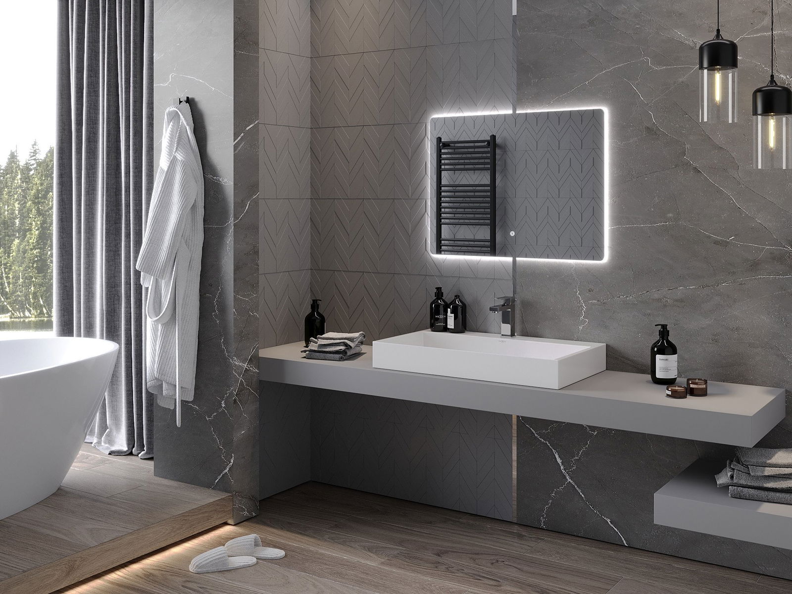 Lumina de fundal LED la oglindă este un element practic care facilitează îngrijirea zilnică, datorită posibilității unei iluminări faciale ideale. Lumina de fundal oferă băii un finisaj modern, subliniind decorul său elegant.