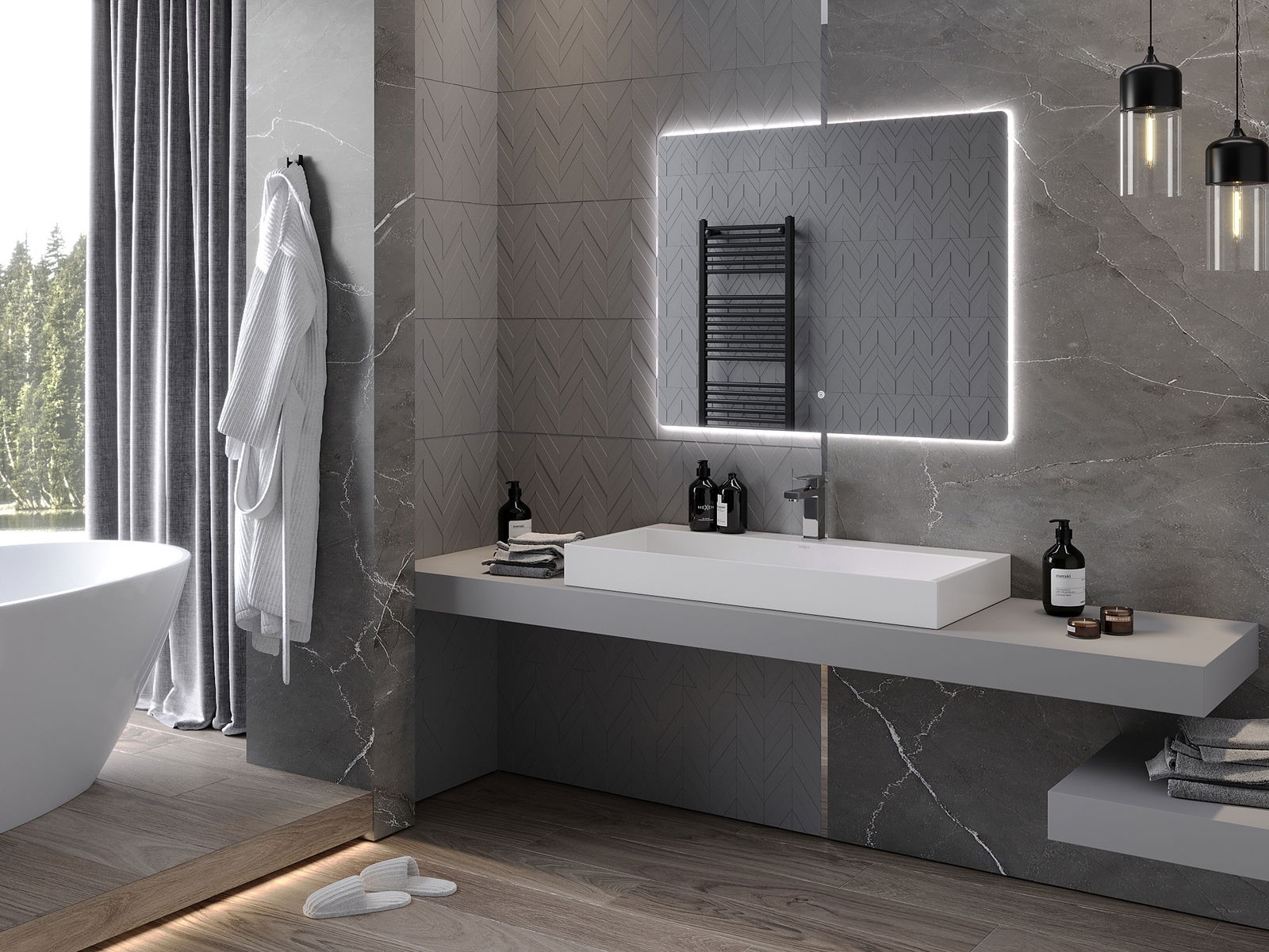Lumina de fundal LED la oglindă este un element practic care facilitează îngrijirea zilnică, datorită posibilității unei iluminări faciale ideale. Lumina de fundal oferă băii un finisaj modern, subliniind decorul său elegant.