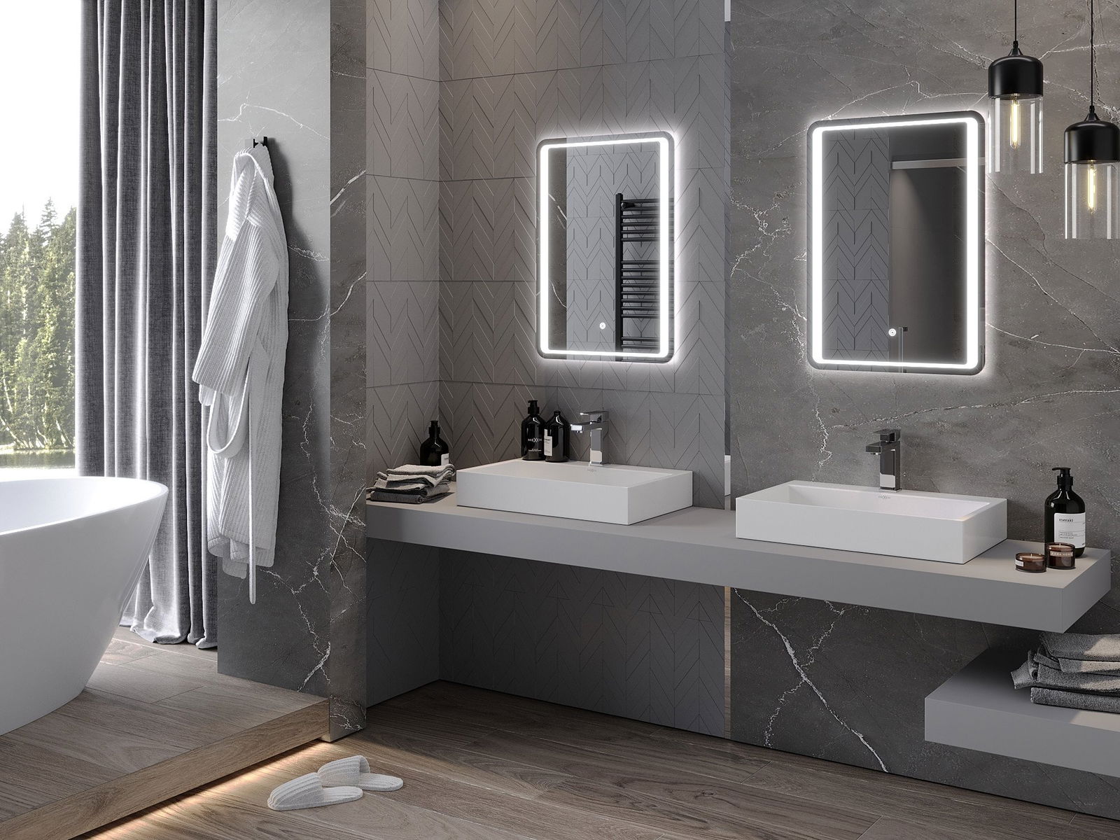 Lumina de fundal LED la oglindă este un element practic care facilitează îngrijirea zilnică, datorită posibilității unei iluminări faciale ideale. Lumina de fundal oferă băii un finisaj modern, subliniind decorul său elegant.