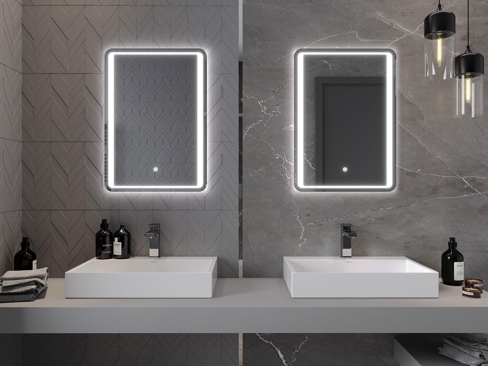 Iluminarea oglinzilor poate fi pornită într -un mod simplu și convenabil, atingând întrerupătorul de pe suprafața oglinzii. Acest lucru permite iluminarea rapidă, fără a fi nevoie să ajungă la comutatorul de iluminare tradițional suplimentar.