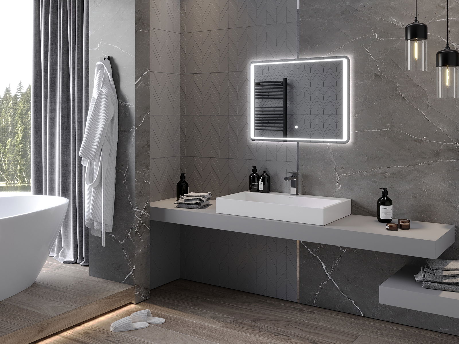 Iluminarea LED la oglindă este un element practic care facilitează îngrijirea zilnică, datorită posibilității de iluminare ideală a feței. Iluminarea oferă băii un finisaj modern, subliniind designul său elegant.