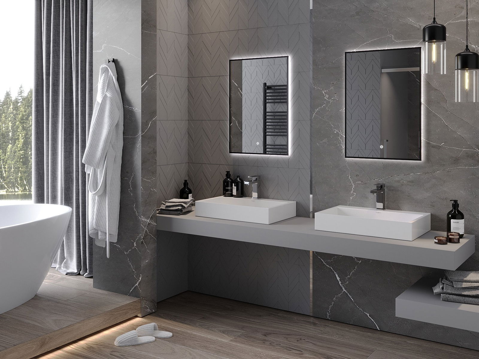 Lumina de fundal LED la oglindă este un element practic care facilitează îngrijirea zilnică, datorită posibilității unei iluminări faciale ideale. Lumina de fundal oferă băii un finisaj modern, subliniind decorul său elegant.