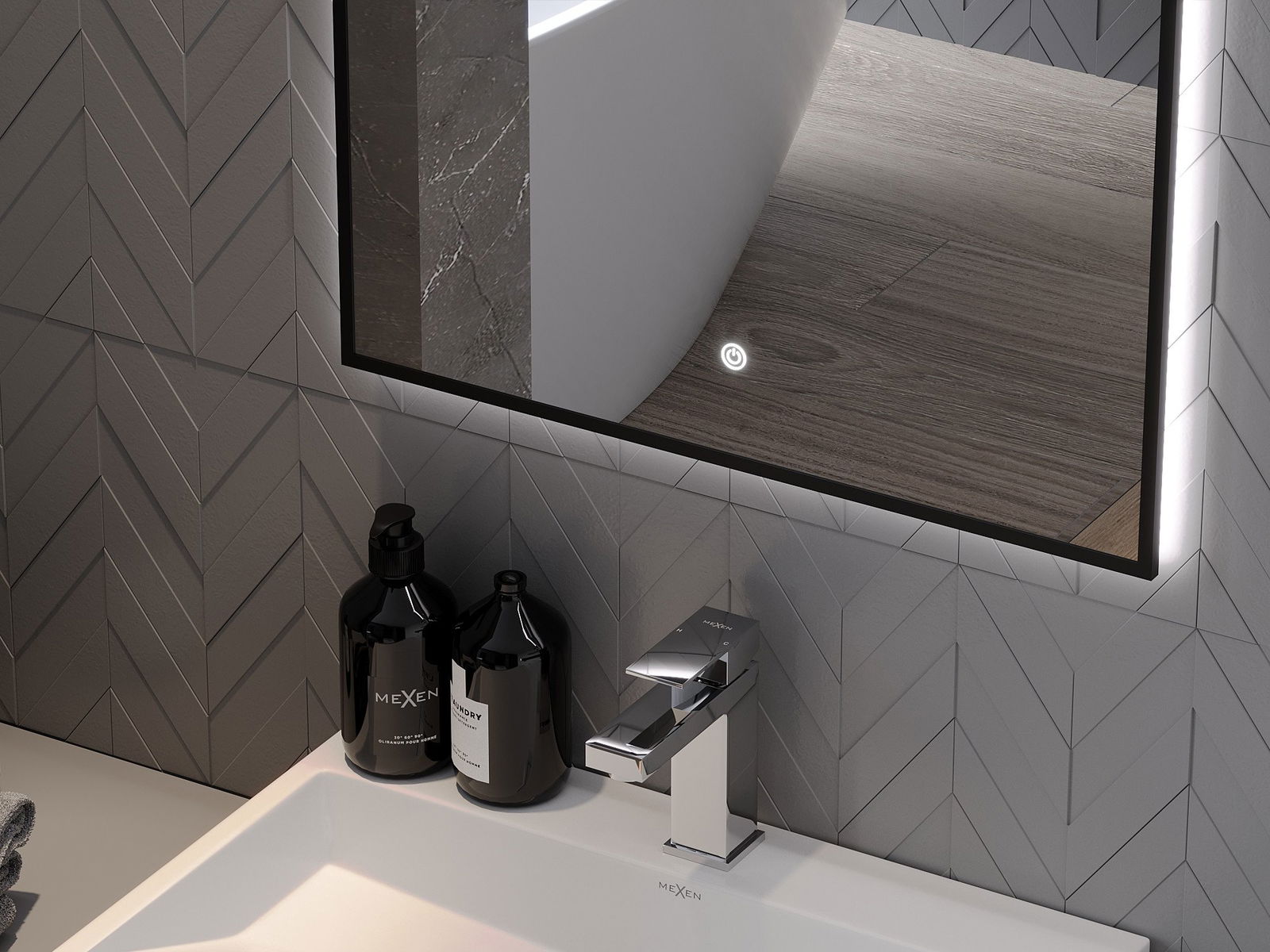 Iluminarea oglinzilor poate fi pornită într -un mod simplu și convenabil, atingând întrerupătorul de pe suprafața oglinzii. Acest lucru permite iluminarea rapidă, fără a fi nevoie să ajungă la comutatorul de iluminare tradițional suplimentar.