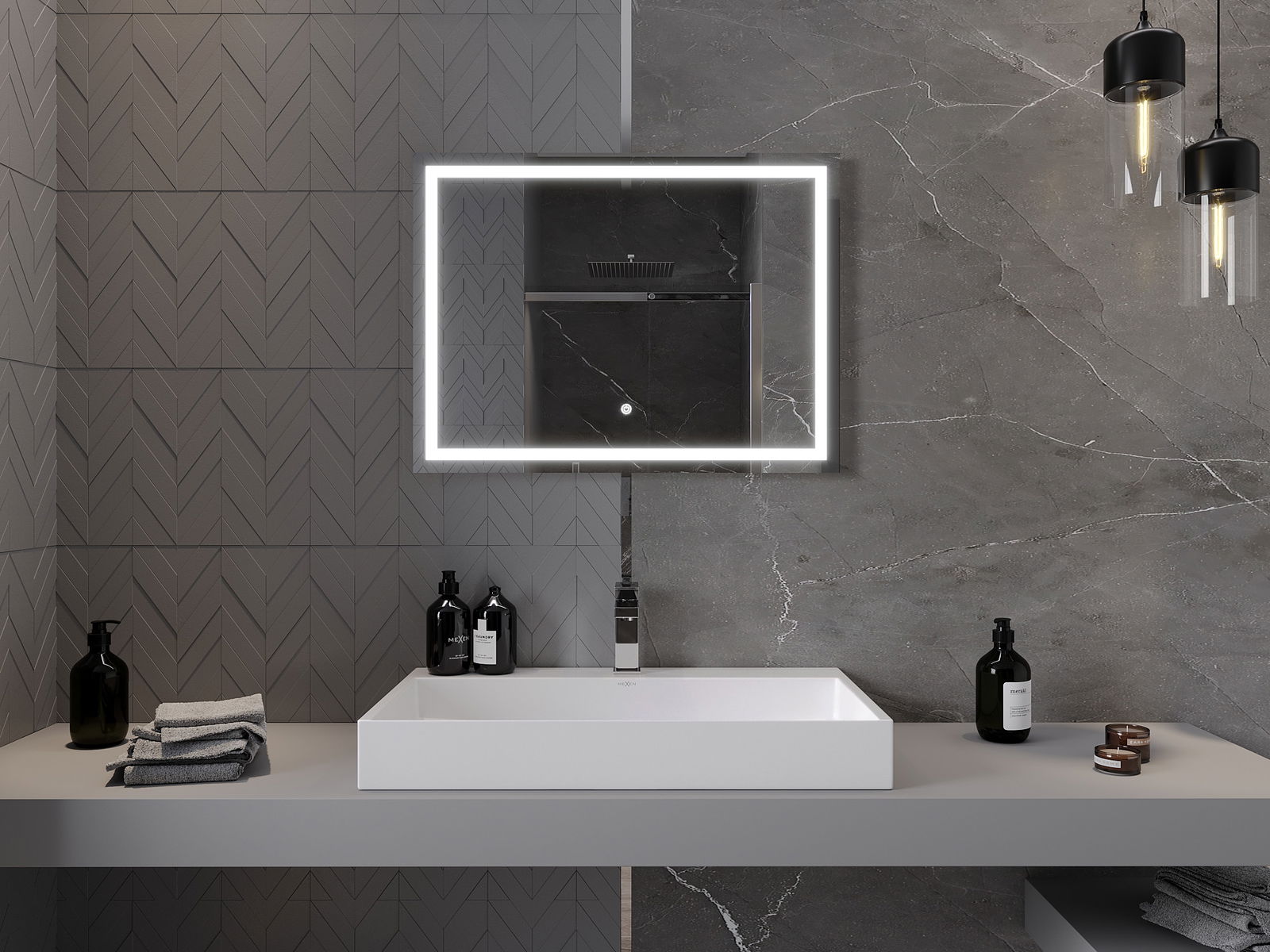 Iluminarea oglinzii poate fi pornită într-un mod simplu și convenabil prin atingerea comutatorului de pe suprafața oglinzii. Acest lucru permite iluminarea rapidă, fără a fi nevoie să ajungeți la comutatorul tradițional de iluminare aflat mai departe.