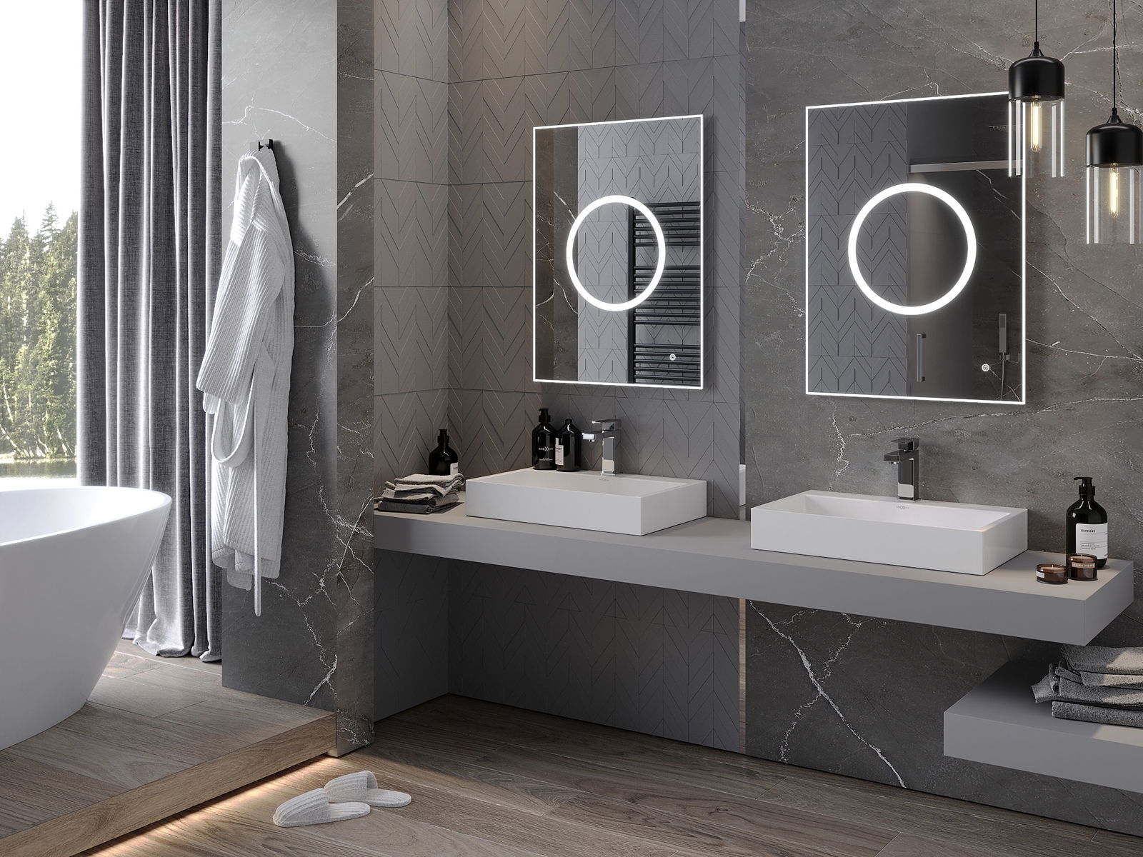Iluminarea oglinzilor poate fi pornită într -un mod simplu și convenabil, atingând întrerupătorul de pe suprafața oglinzii. Acest lucru permite iluminarea rapidă, fără a fi nevoie să ajungă la comutatorul de iluminare tradițional suplimentar.
