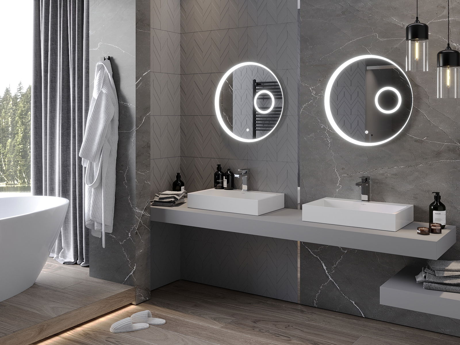 Iluminarea LED la oglindă este un element practic care facilitează îngrijirea zilnică, datorită posibilității de iluminare ideală a feței. Iluminarea oferă băii un finisaj modern, subliniind designul său elegant.