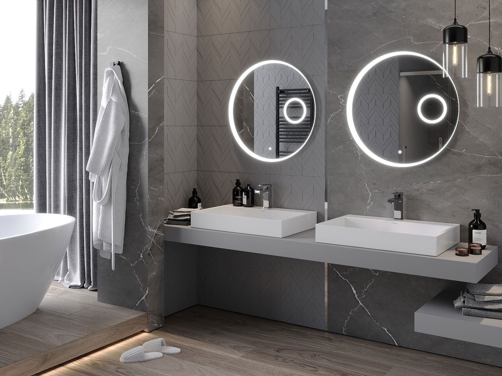 Iluminarea oglinzilor poate fi pornită într -un mod simplu și convenabil, atingând întrerupătorul de pe suprafața oglinzii. Acest lucru permite iluminarea rapidă, fără a fi nevoie să ajungă la comutatorul de iluminare tradițional suplimentar.