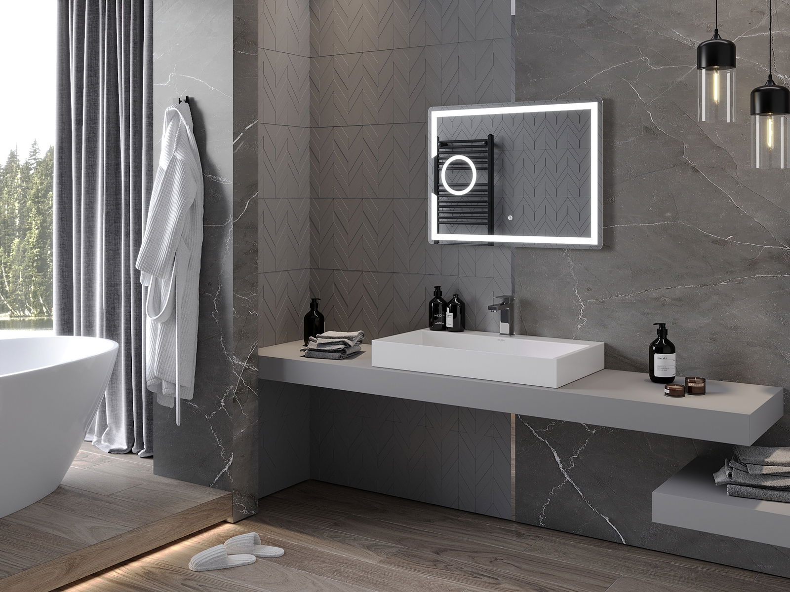 Lumina de fundal LED la oglindă este un element practic care facilitează îngrijirea zilnică, datorită posibilității unei iluminări faciale ideale. Lumina de fundal oferă băii un finisaj modern, subliniind decorul său elegant.