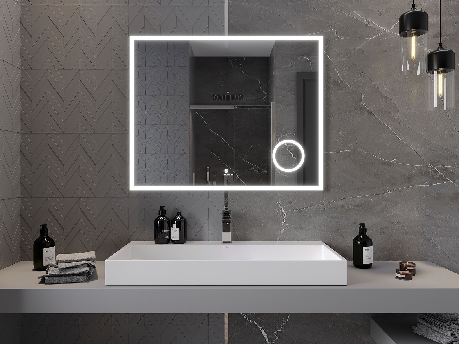 Iluminarea oglinzilor poate fi pornită într -un mod simplu și convenabil, atingând întrerupătorul de pe suprafața oglinzii. Acest lucru permite iluminarea rapidă, fără a fi nevoie să ajungă la comutatorul de iluminare tradițional suplimentar.