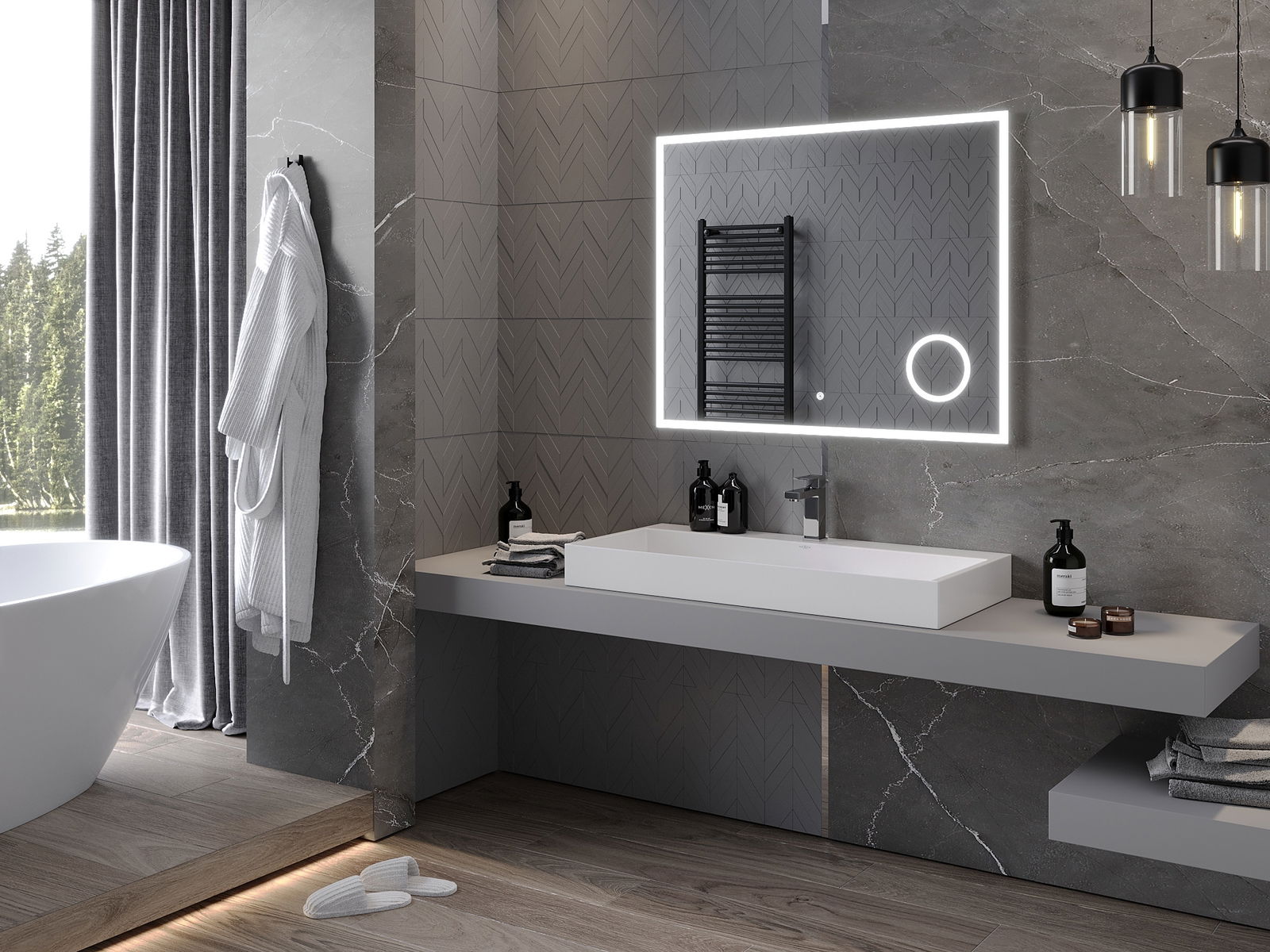 Lumina de fundal LED la oglindă este un element practic care facilitează îngrijirea zilnică, datorită posibilității unei iluminări faciale ideale. Lumina de fundal oferă băii un finisaj modern, subliniind decorul său elegant.